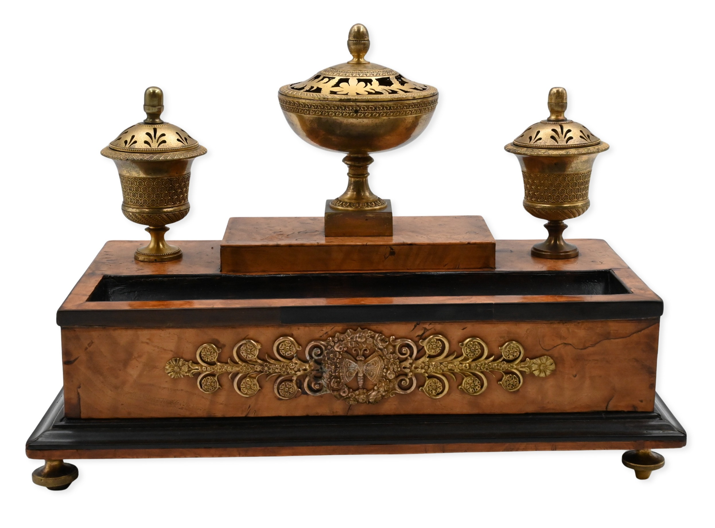 – 1896 Heirloom Inventory, Dowager’s Rooms: “A 3 ft. 9 in. mahogany Empire commode chest of two long and two short drawers with column corners, gilt ormolu mounts and white marble top.”