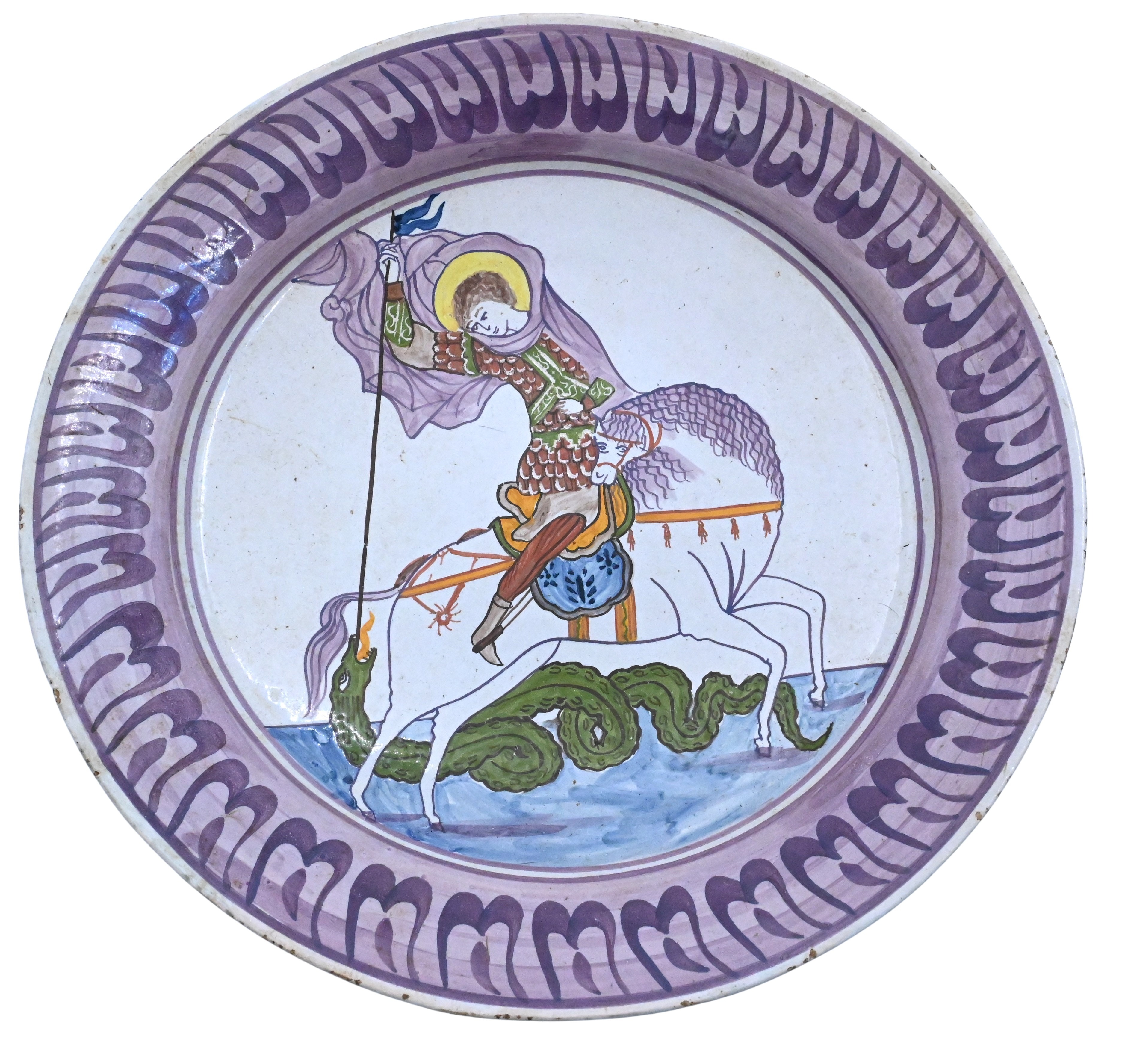 Condition: Very good overall with minor glaze wear and small chips; lamp fittings later.