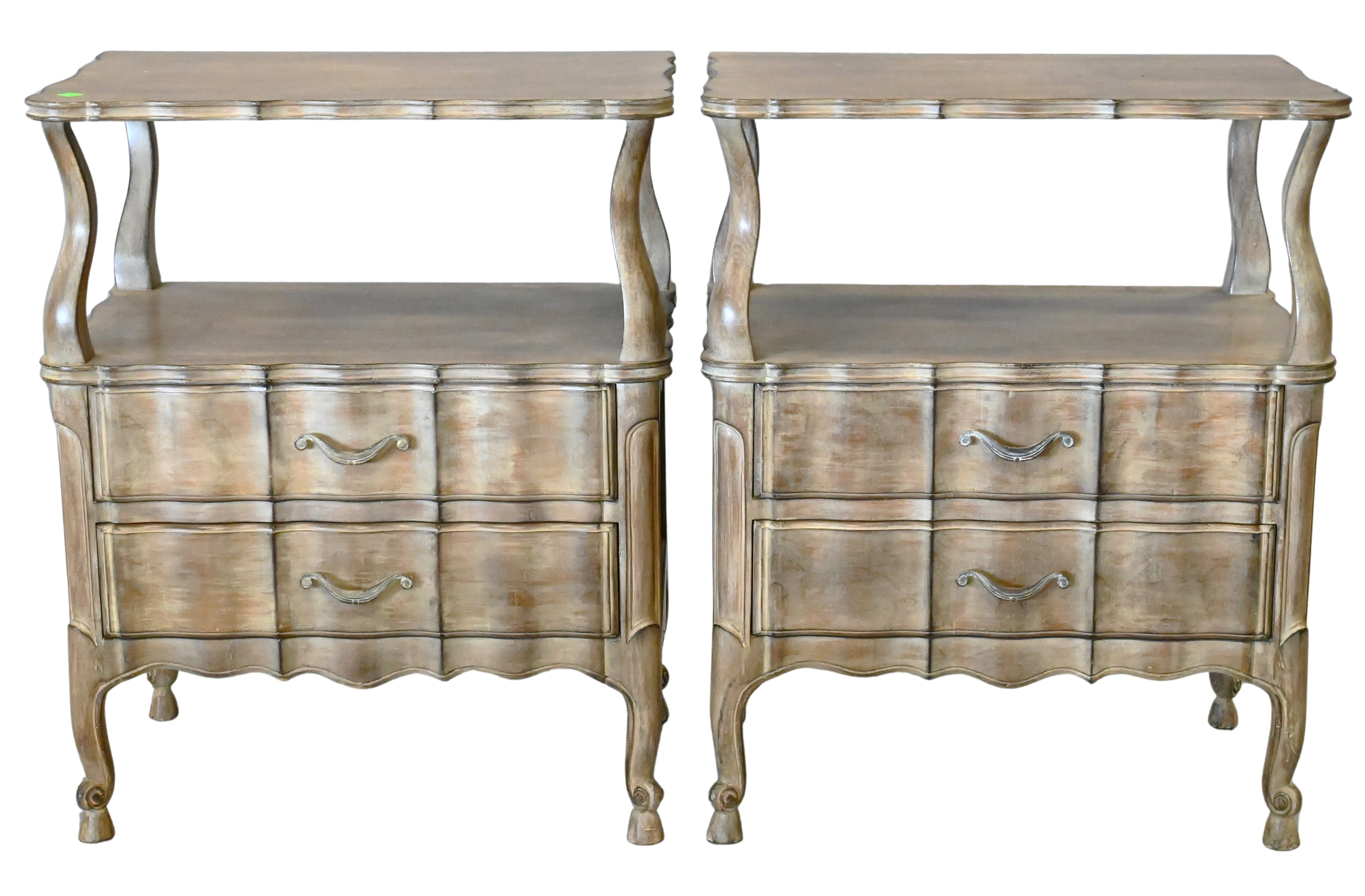 Condition: coffee pot handle slightly loose, and spacers cracking, finial bent, creamer with pin head sized ding to inside, tea pot with pin head dings to lower handle, tilting water pot with two small dings to backside, handle loose, light scuffing to all throughout