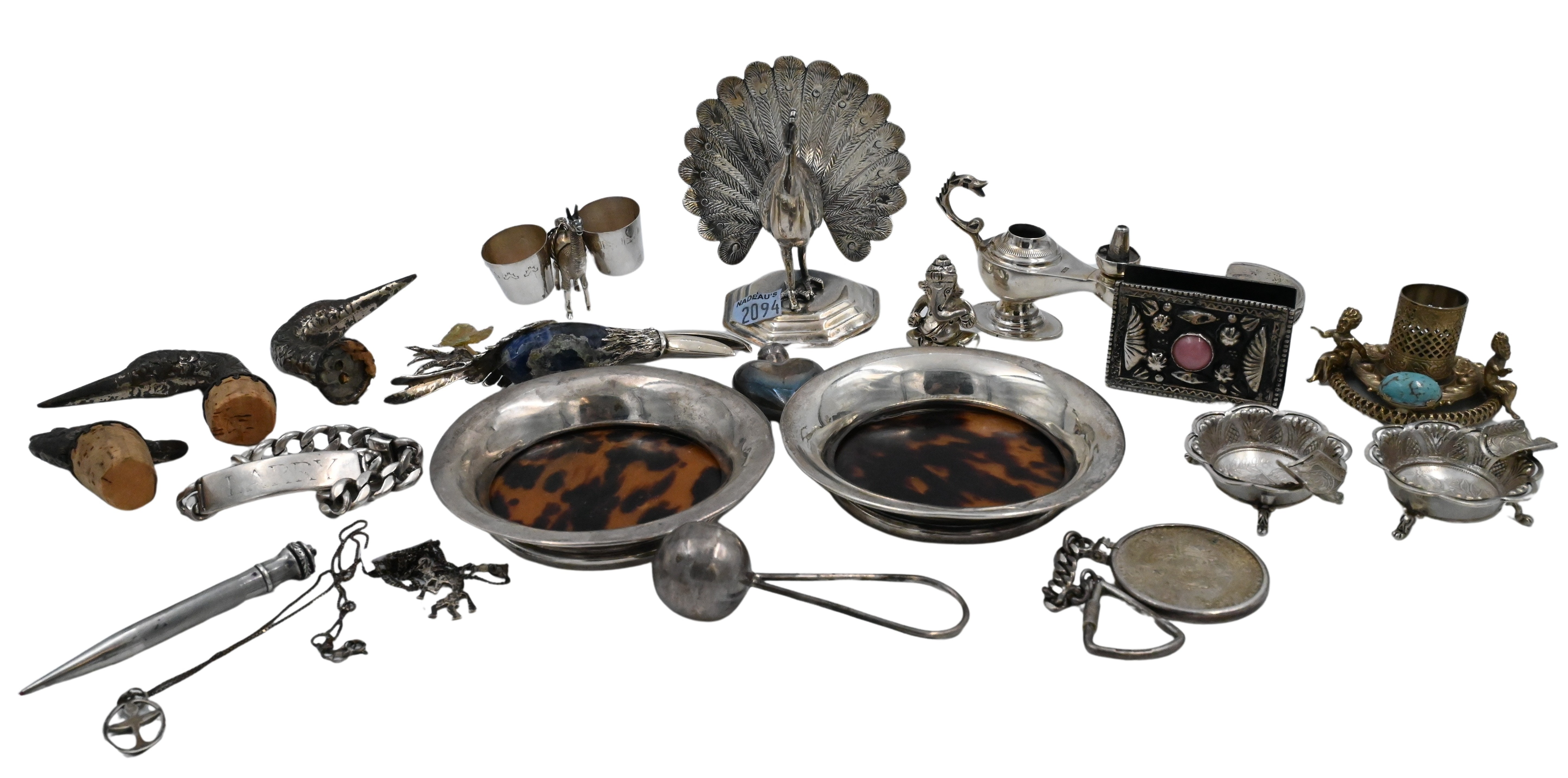 to include eight dinner forks, eight luncheon forks, nine dessert forks, six place spoons, eight tablespoons, 19 teaspoons, eight demi spoons, six dinner knives, seven luncheon knives, seven butter knives, one serving fork, one slotted pea spoon, one ladle, one sugar tong, one lemon fork, one carving knife, one carving fork, one butter spreader