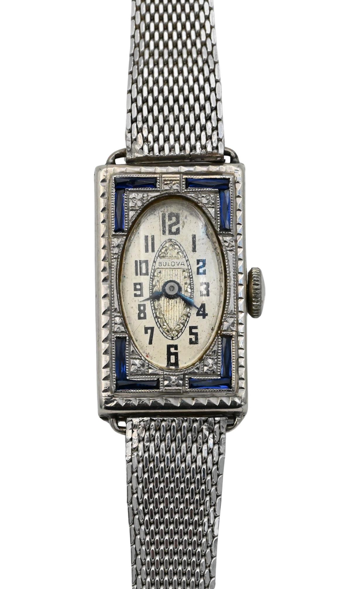 Bulova 14K White Gold Art Deco Sapphire Ladies Watch