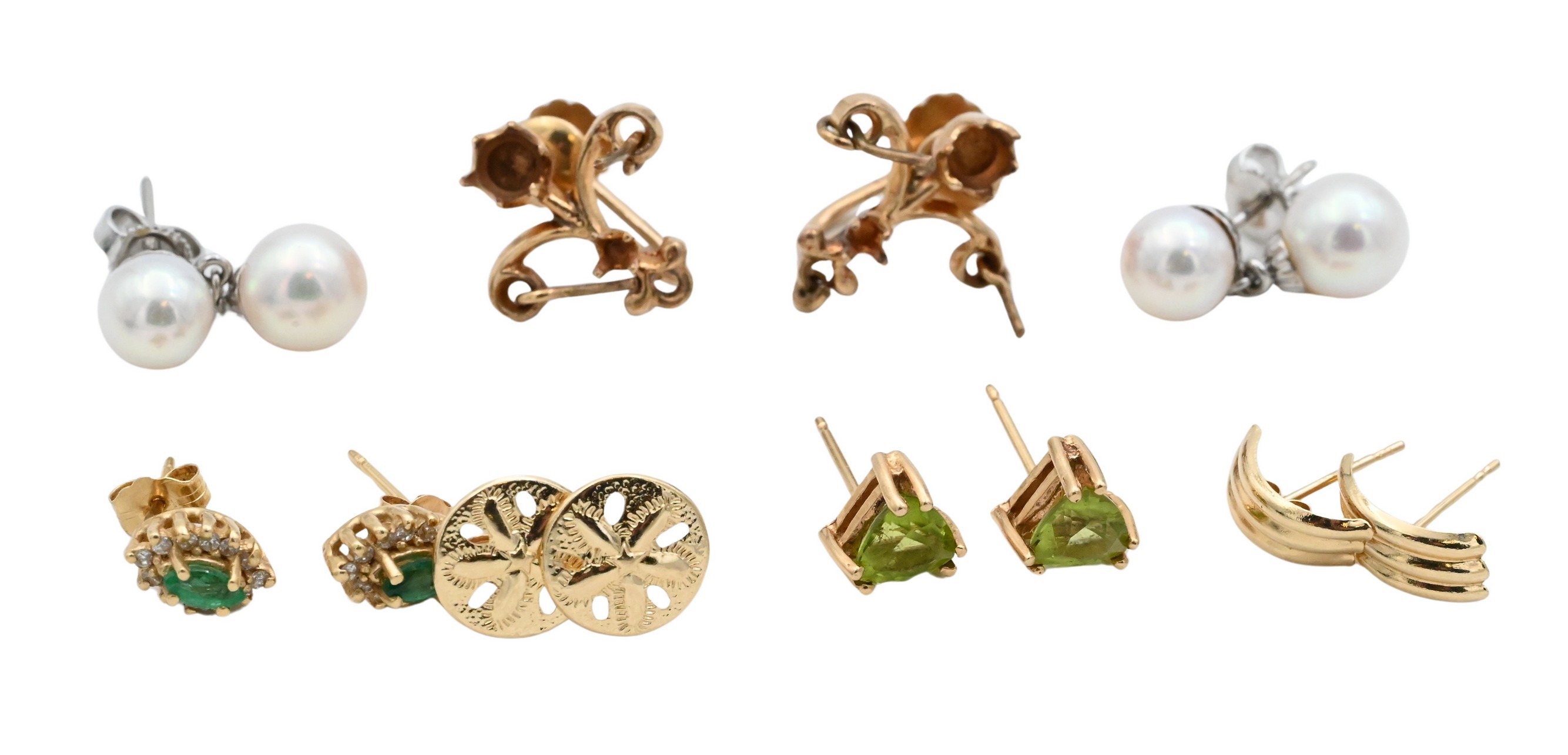 14K Yellow Gold Pearl Earrings Group