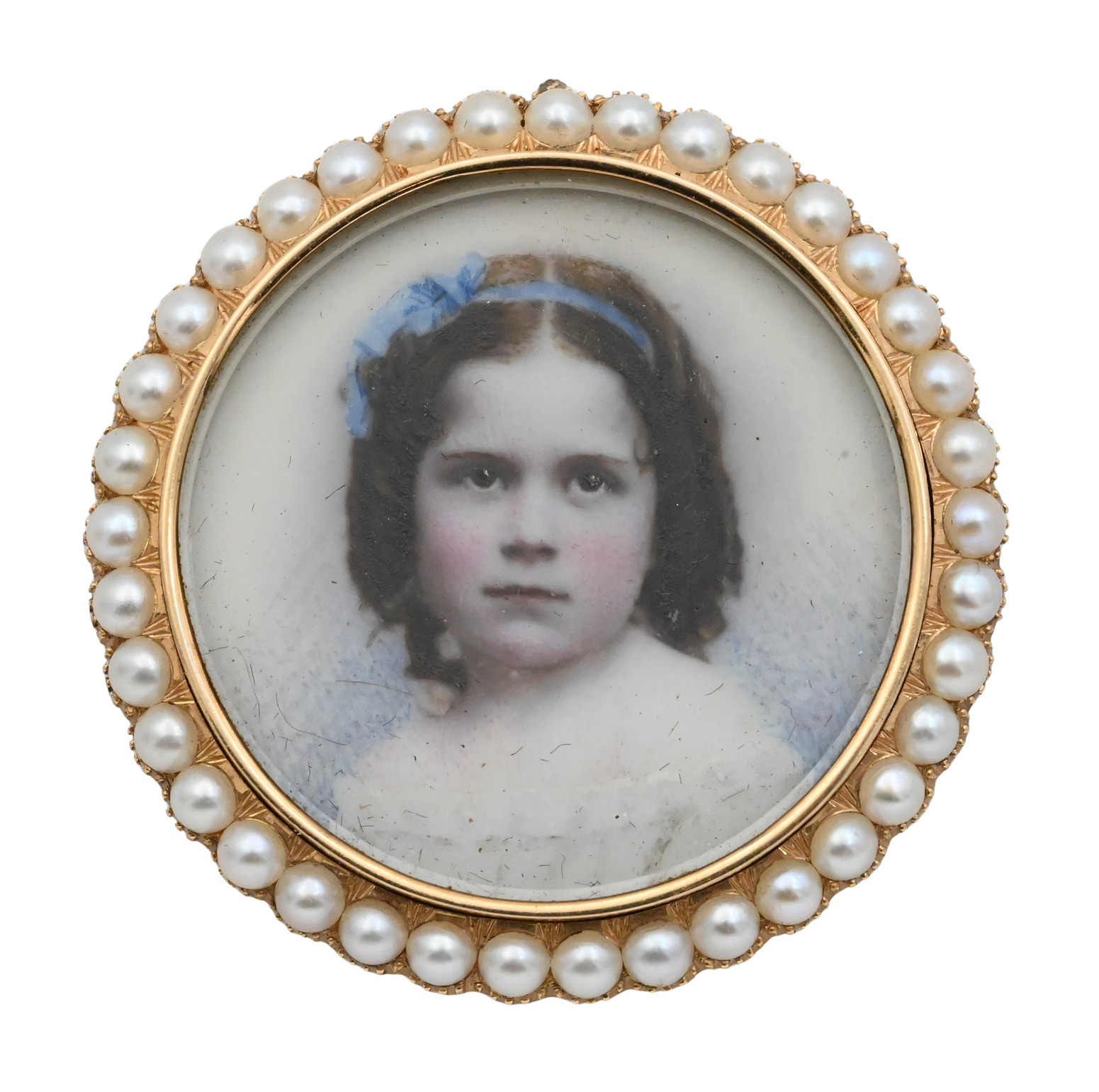 14K Victorian Gold and Pearl Miniature Portrait
