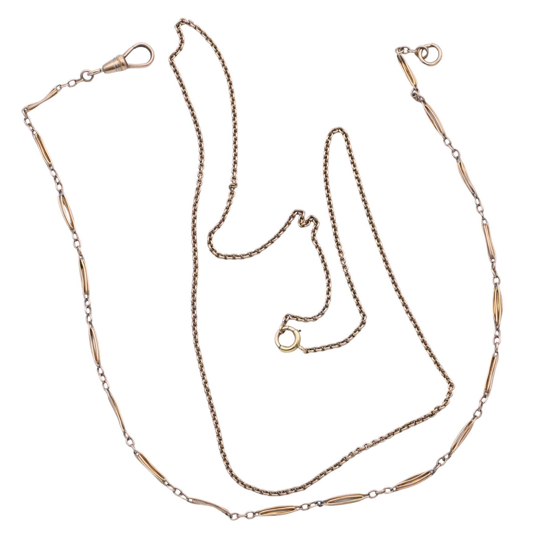watch chain 13 1/4 inches long, necklace 18 inches long, total weight 9.1 grams