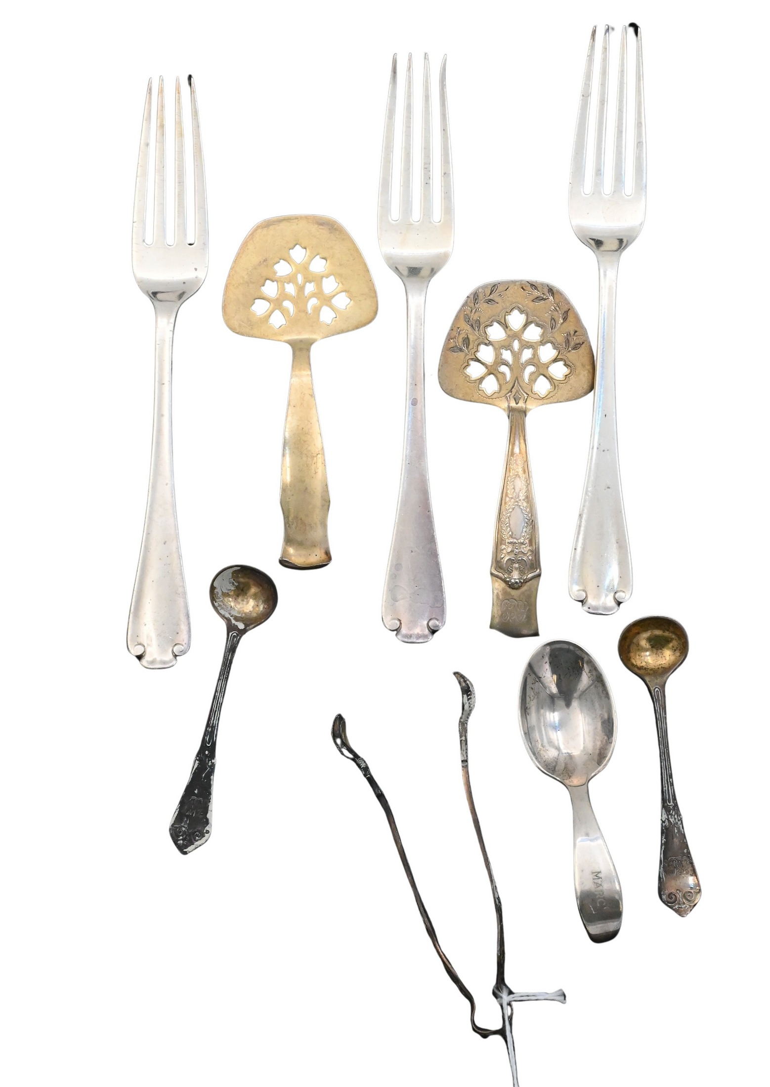 to include three forks, one tong, three spoons, and two serving spoons (broken)