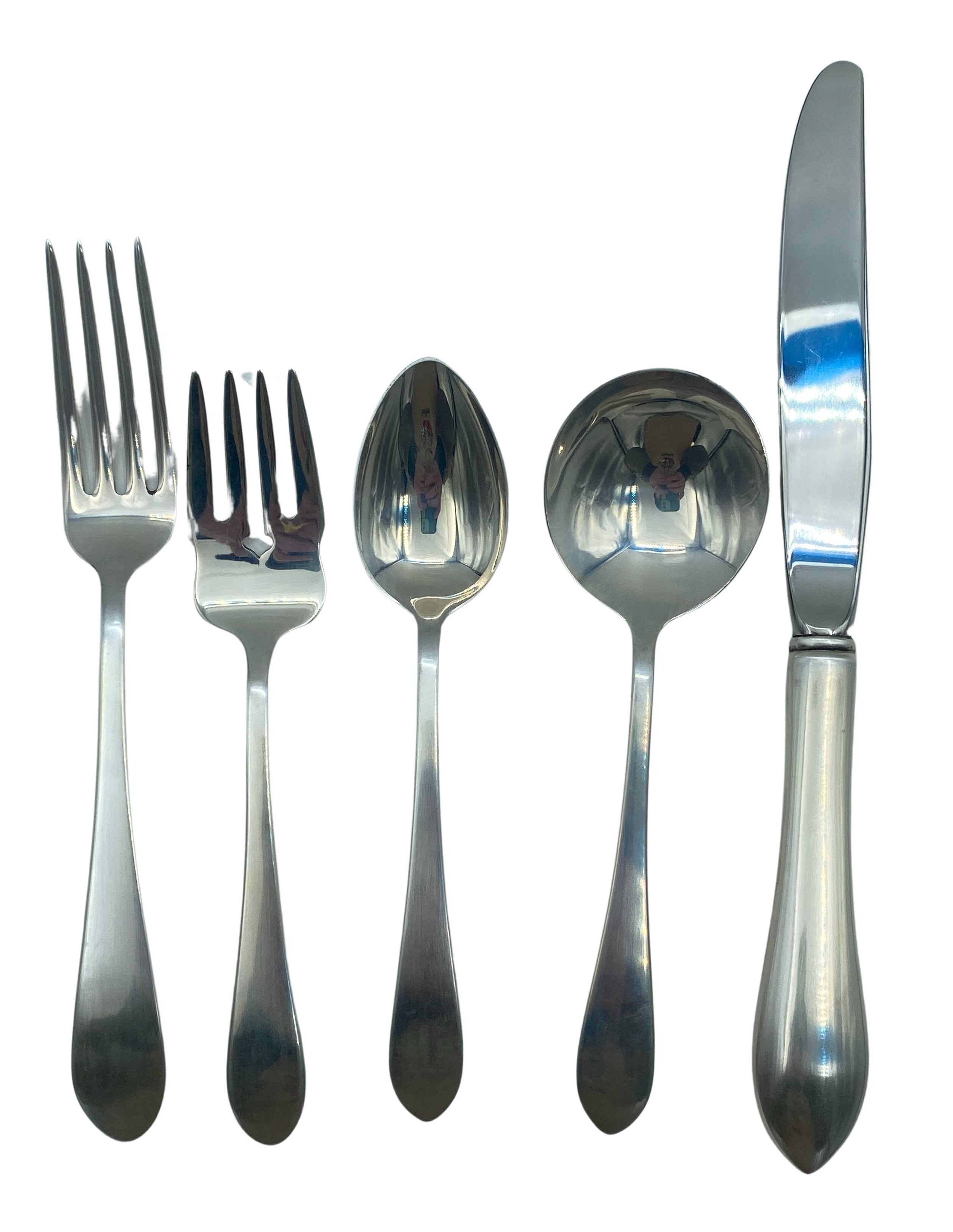 Reed and Barton Sterling Silver Flatware Set for Eight in Pointed Antique Pattern