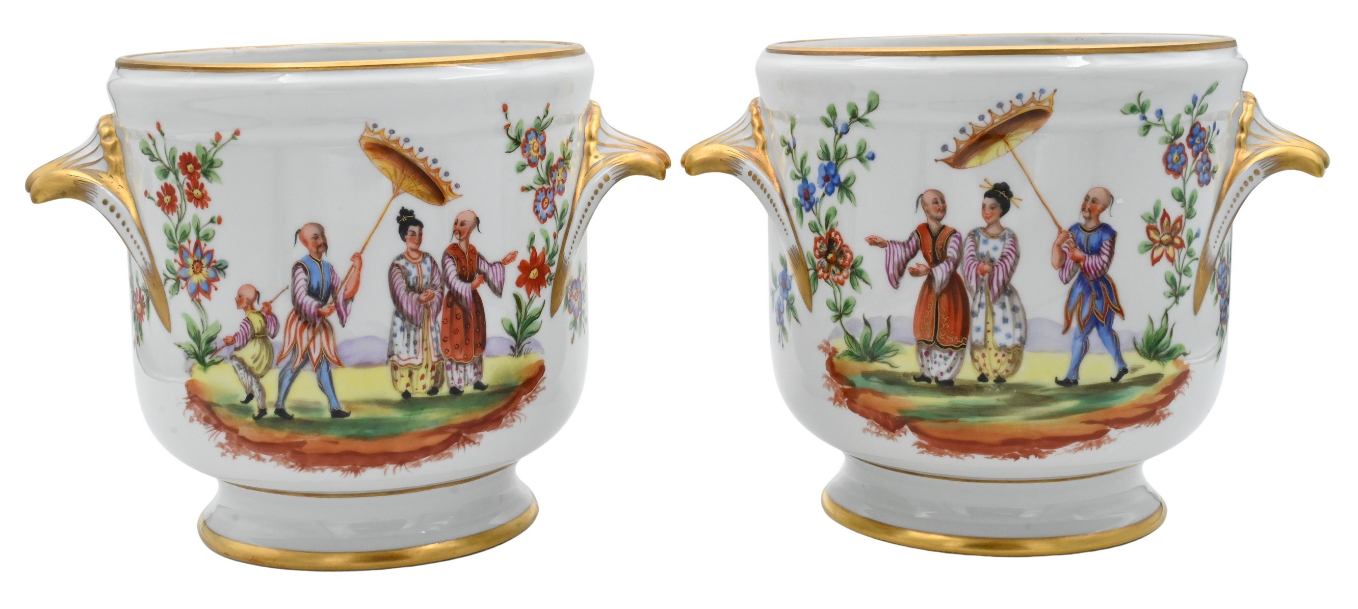 to include French rectangular pot in cirque Chinois pattern with bamboo turnings signed Le Tallec along with cache pot cirque Chinois pattern marked Tiffany & Company private stock hand painted in France
