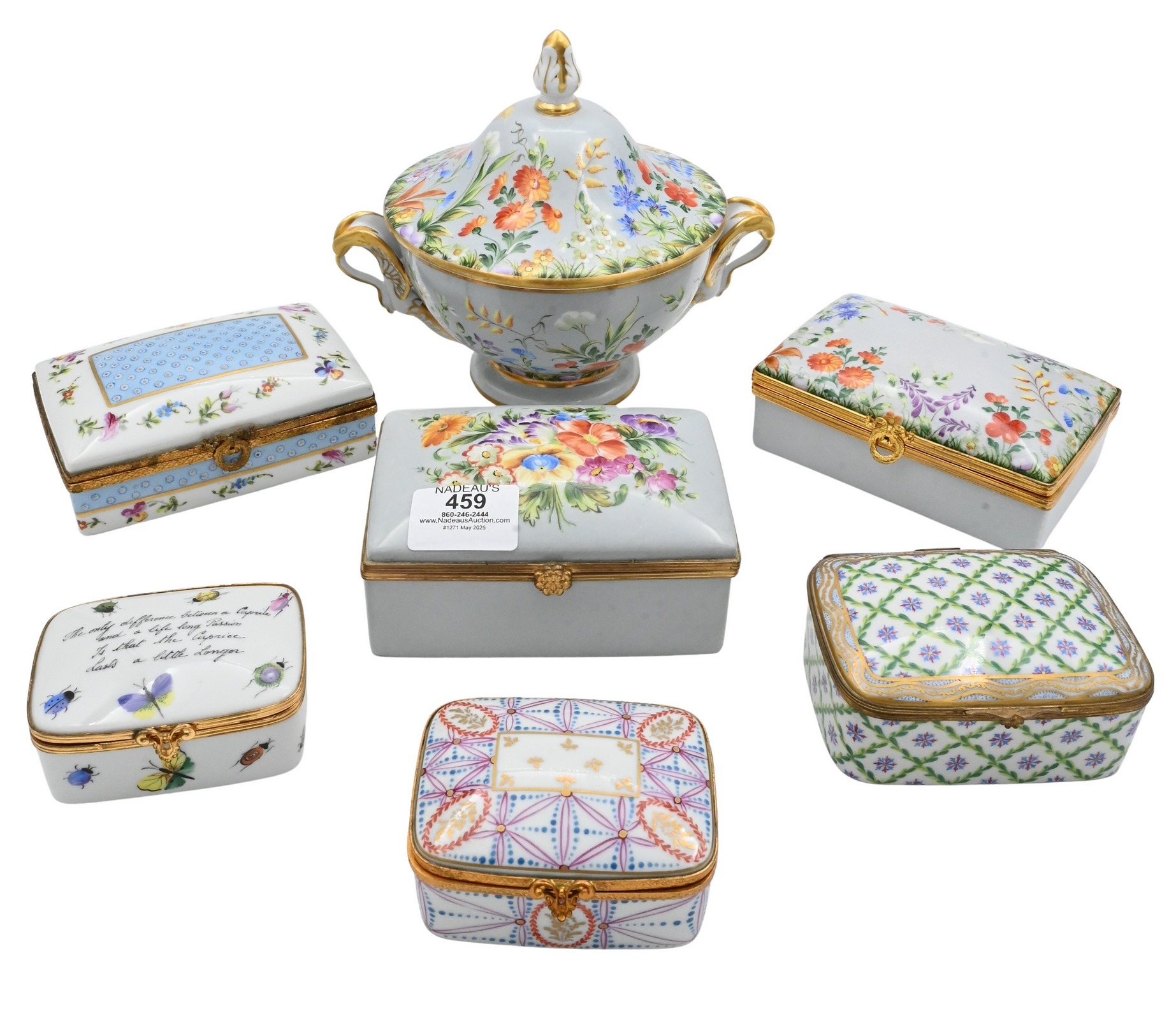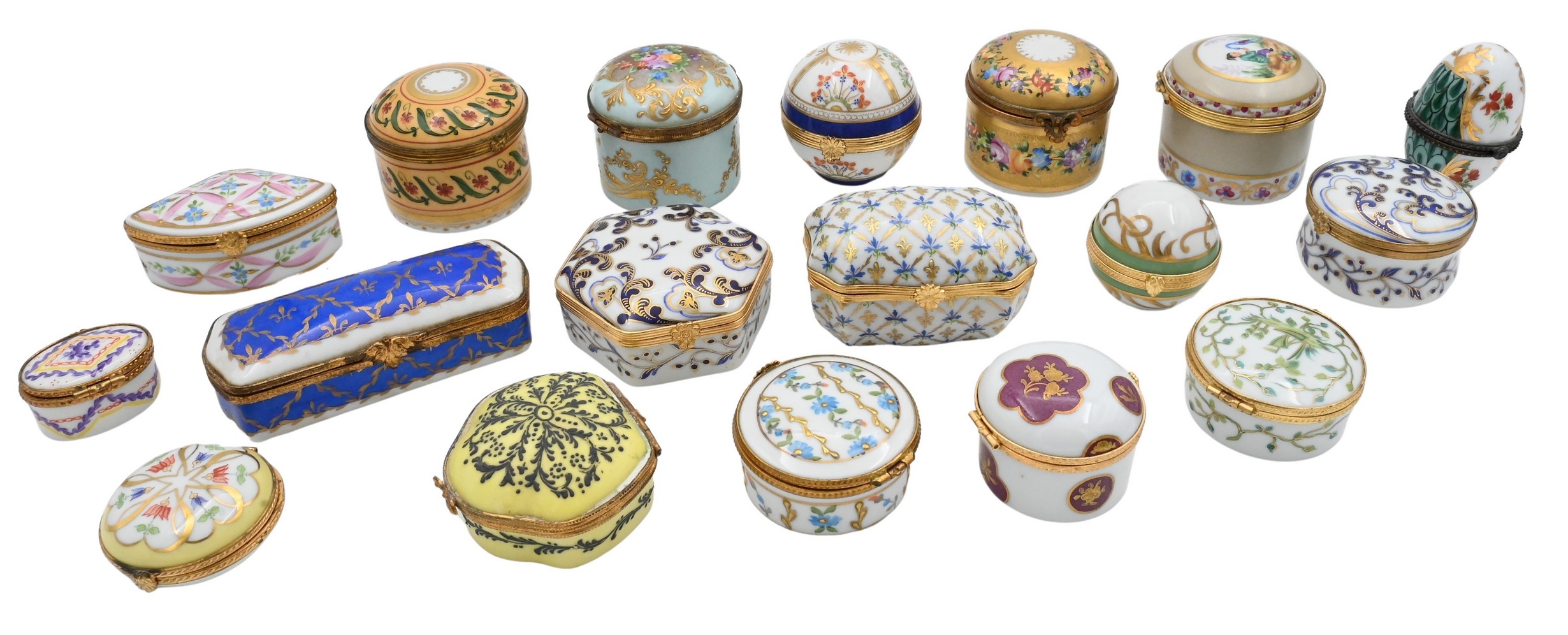 Eighteen Le Tallec and Tiffany and Company Porcelain Hinged Boxes