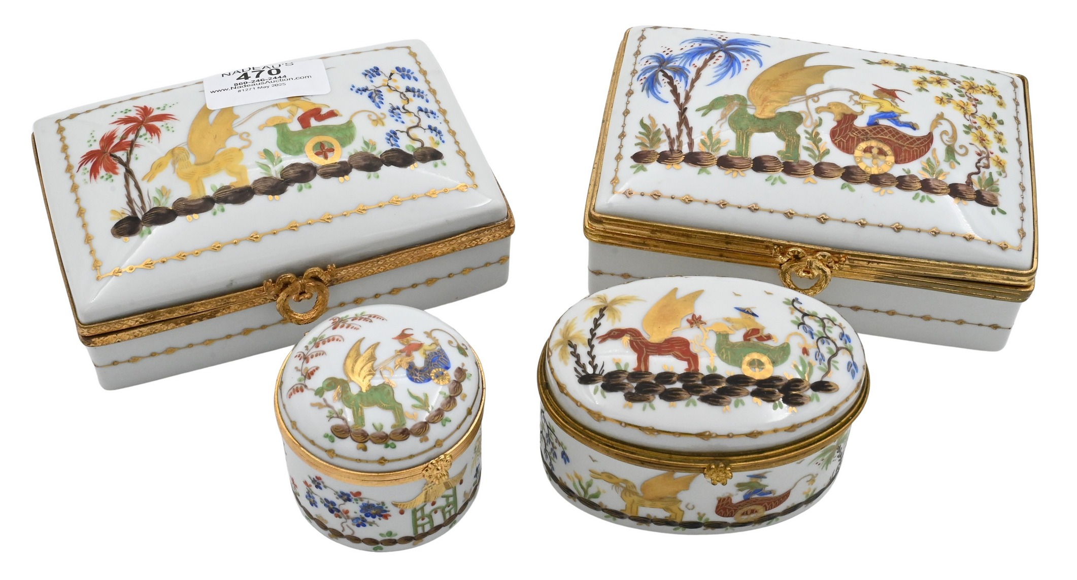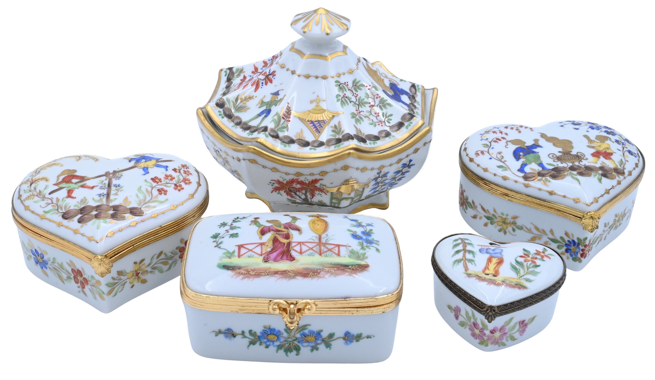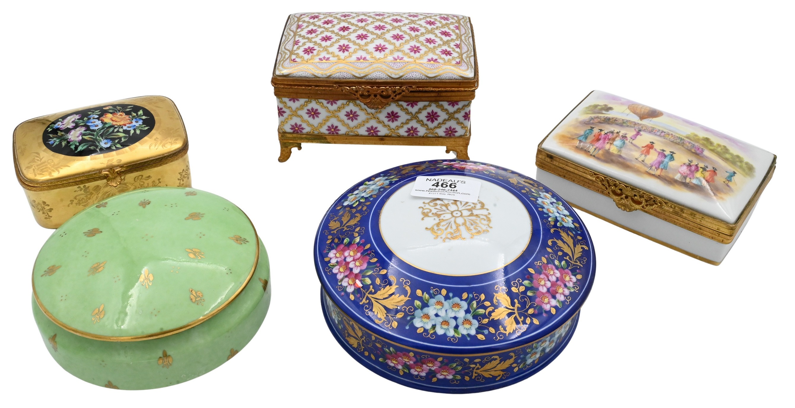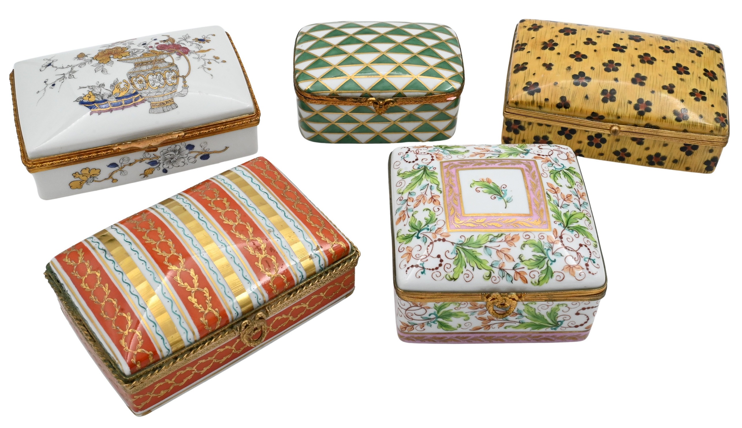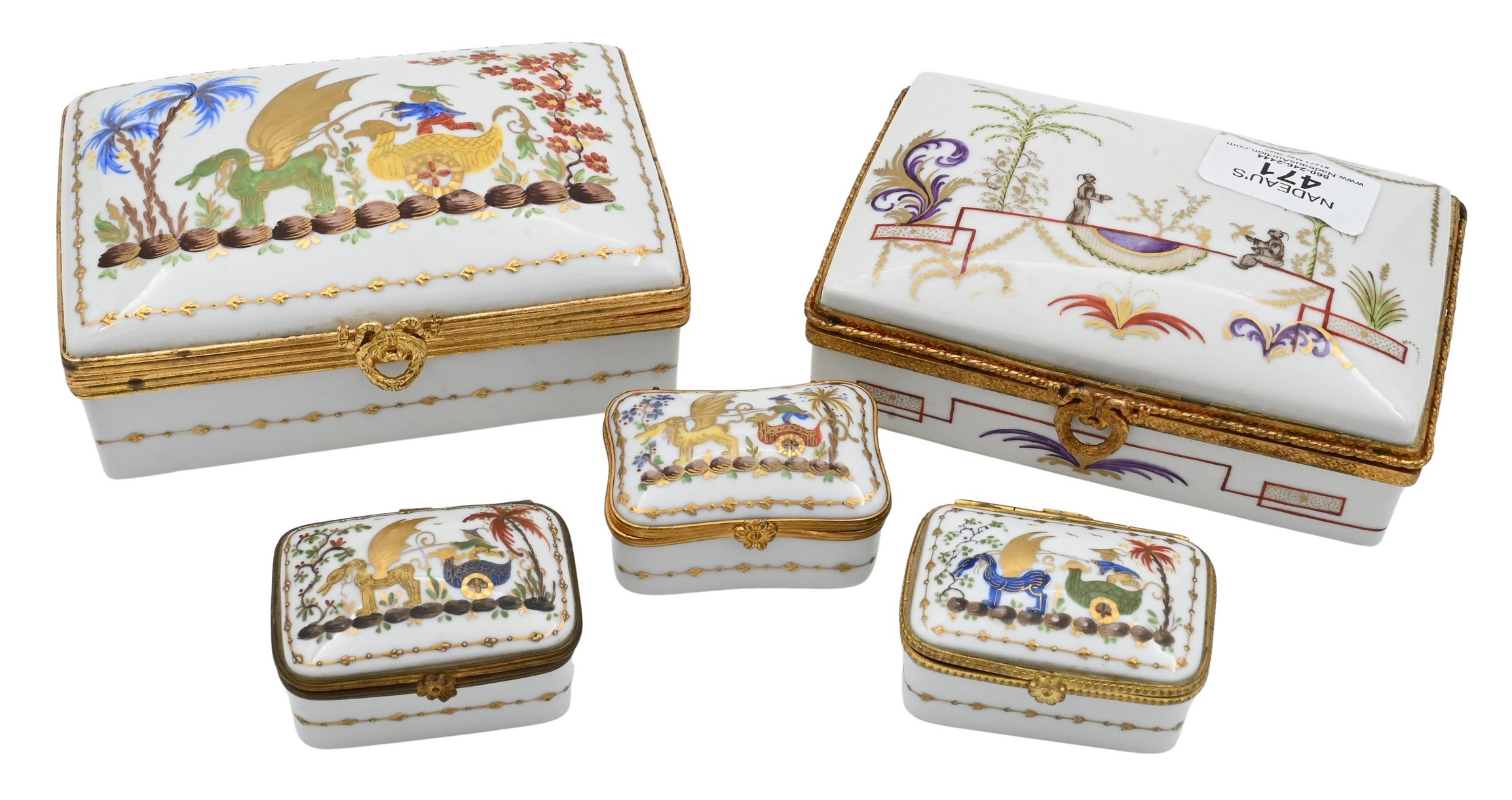 Five Piece Le Tallec and Tiffany and Company Porcelain Boxes