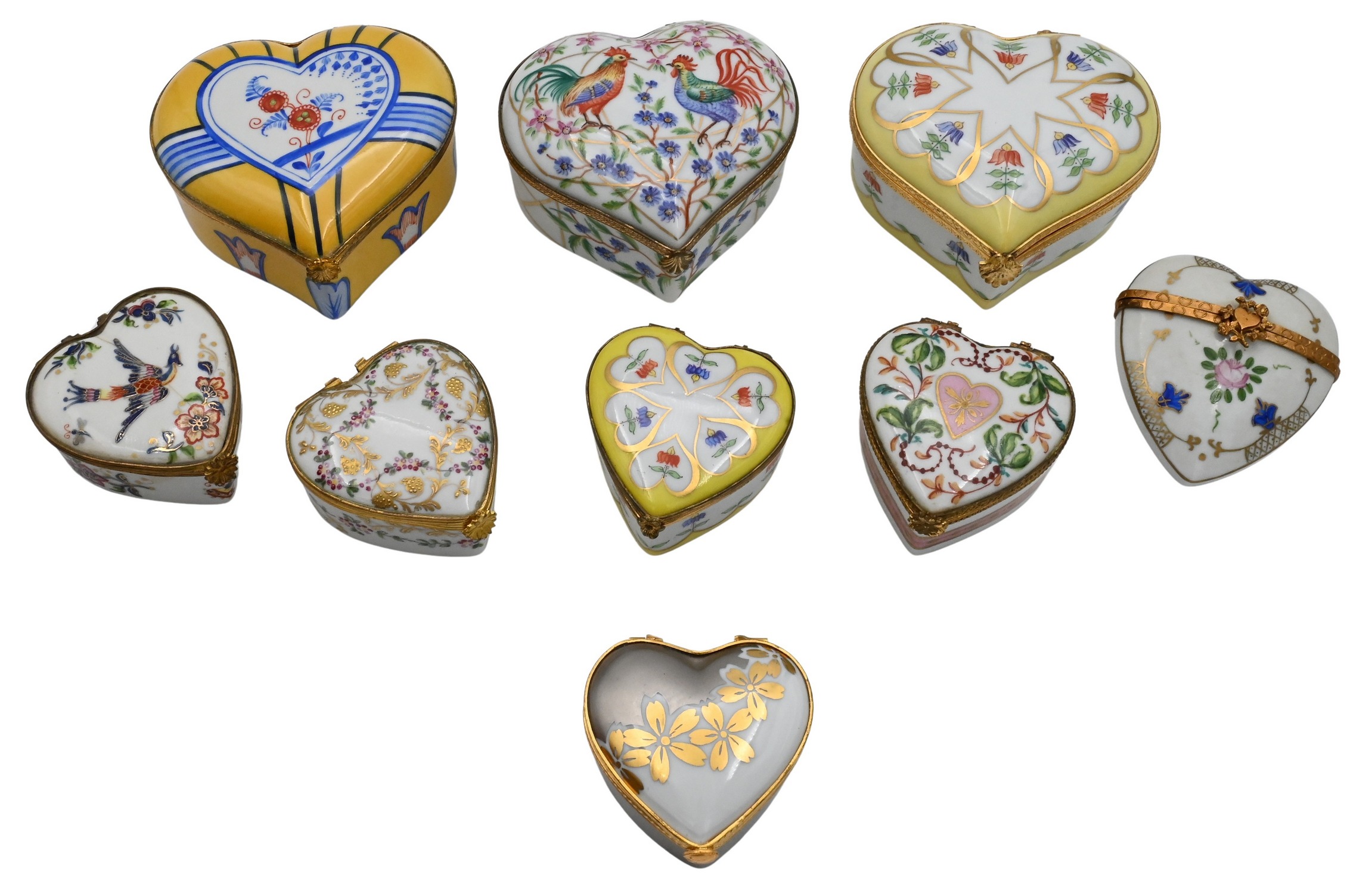 Nine Mostly Le Tallec for Tiffany and Company Porcelain Heart Trinket Boxes