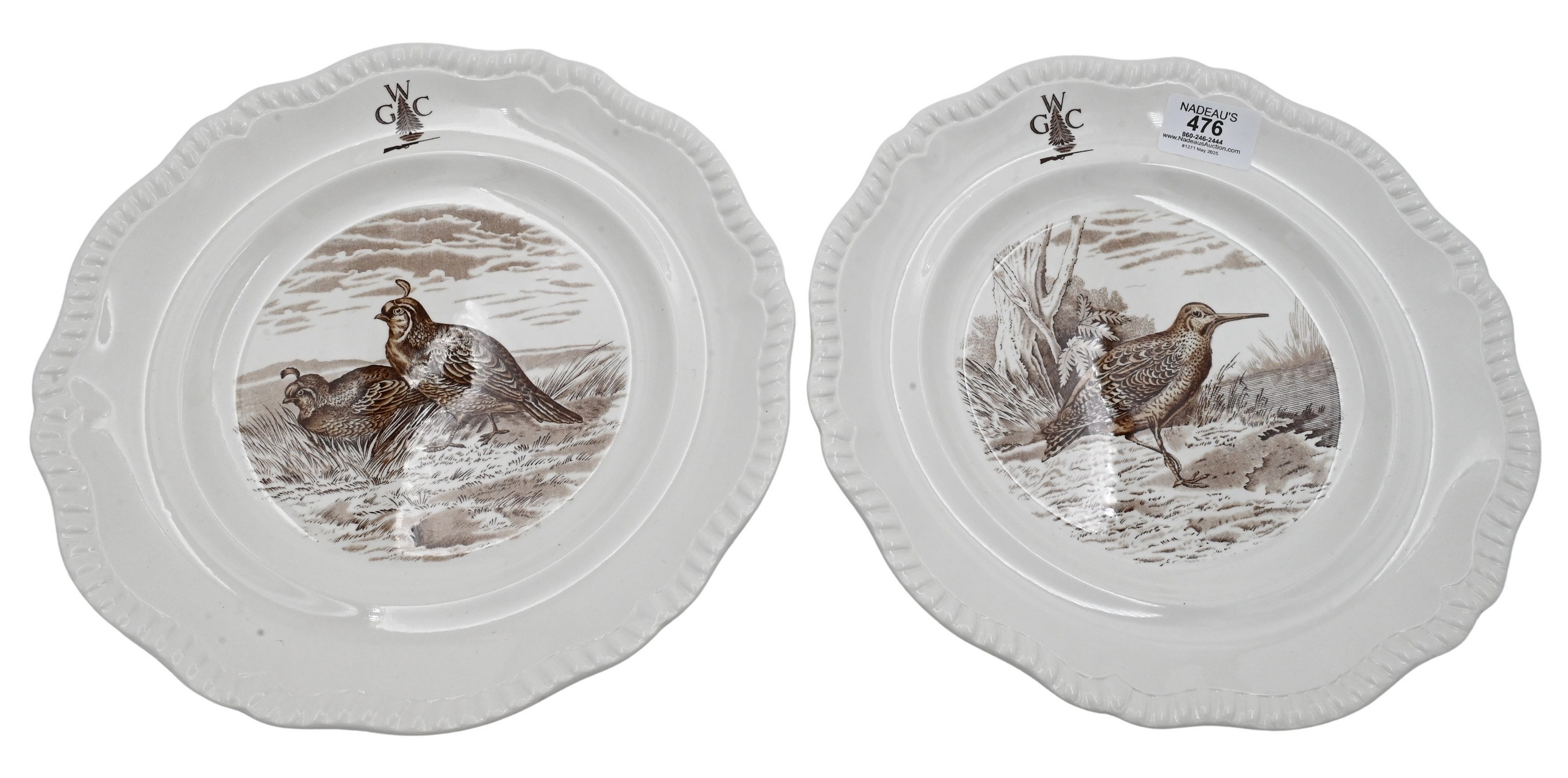 to include green fishnet bunny rabbit, basket, reticulated bowl, small square reticulated basket bowl, triangle serving dish, and double asparagus handled plate