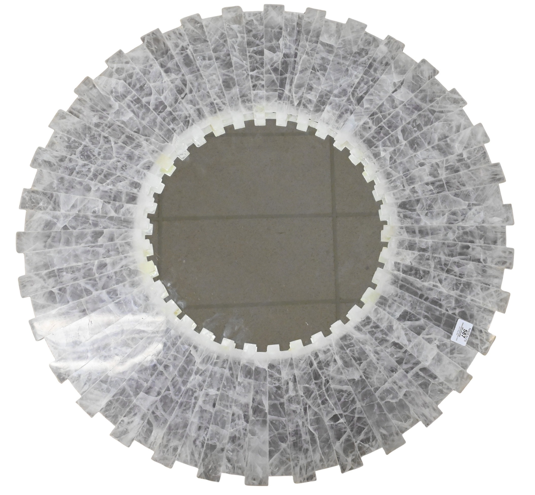 Mid-Century Modern rectangular mirror having charcoal gray glass pieces affixed together with metal wire