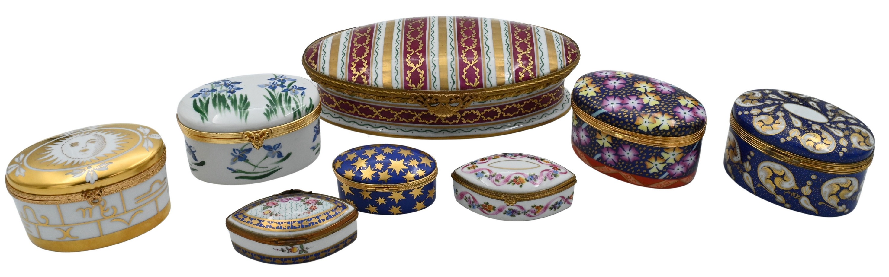 Eight Le Tallec and Tiffany and Company Hinged Porcelain Boxes