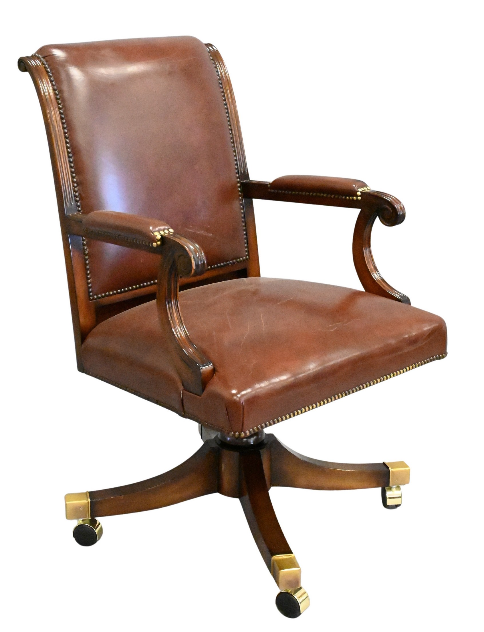 Smith and Watson Style Mahogany and Leather Swivel Desk Chair