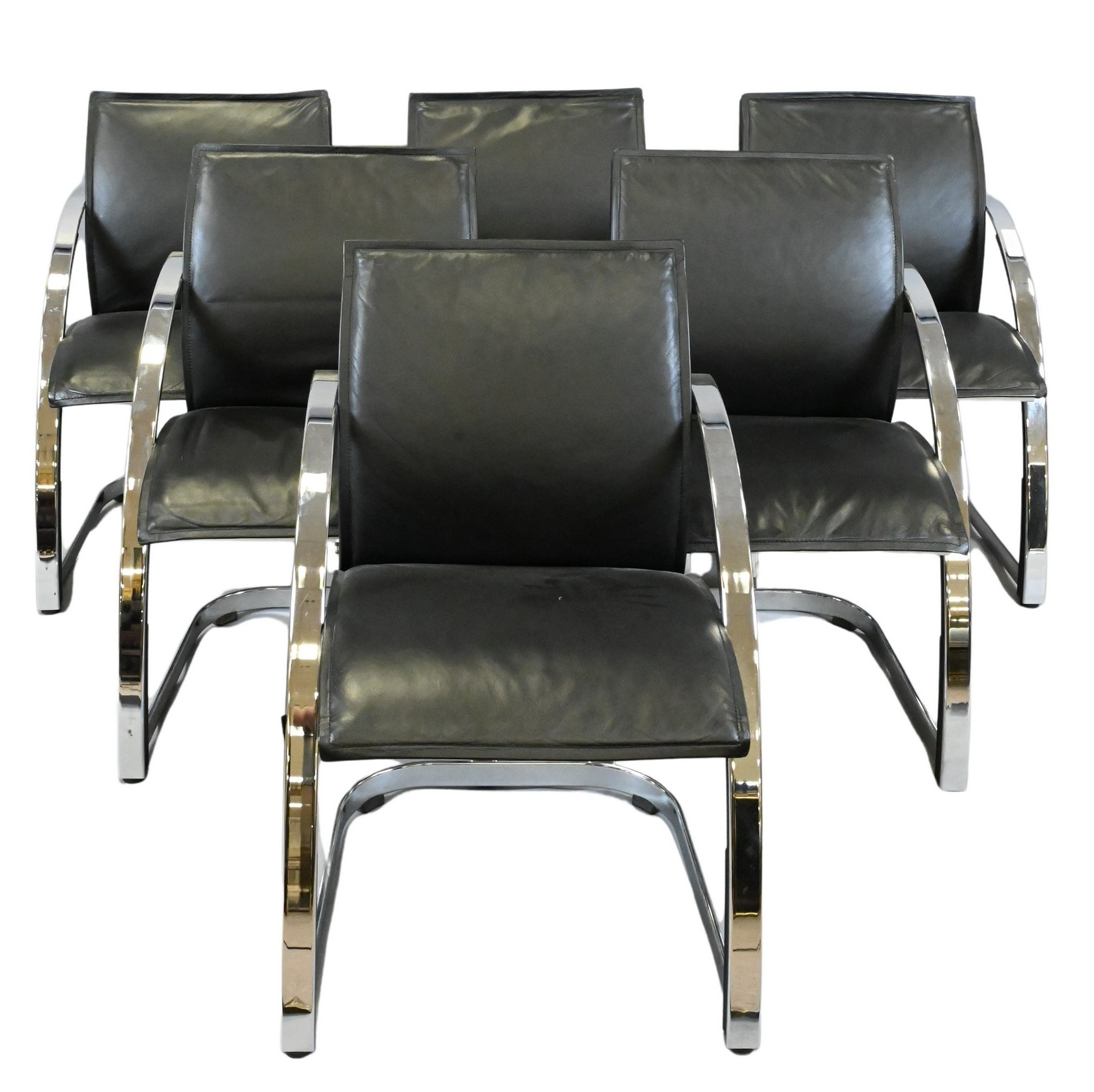 Set of Seven Girsberger Leather and Chrome Armchairs