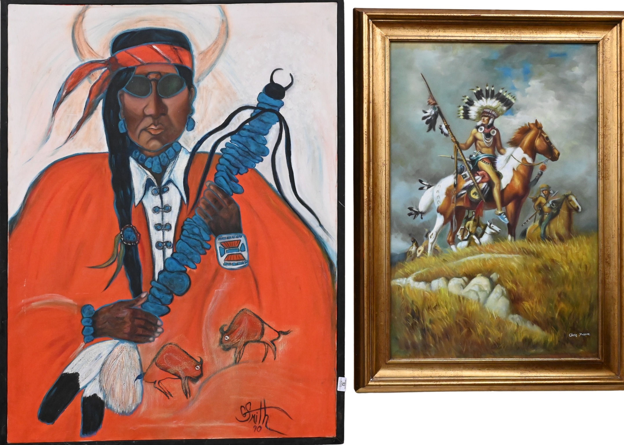 Auction Terms and Conditions: All lots are sold "AS IS" The condition of lots can vary widely and are unlikely to be in a perfect condition. *No credit card payments will be accepted for silver, gold, or jewelry from buyers that have not purchased from our gallery in the past. Condition Reports are available by request and answered in the order they are received starting the week of the sale. Our in house buyer's premium (applies for absentee and phone bidders) is 25% and we offer a 3% discount for cash, check, wire, or Zelle payments. If you are bidding through a third party platform you must make payment through that platform. Our online buyers premium for all third party sites is 30% (there are no discounts offered for 3rd party bidding platforms). Our buyer's premium for our own website is 30%, there is a 3% discount offered for cash, check, Zelle, or Wire payments for buyer's using only our site or who are bidding in house.
