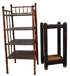 Stickley style Mission umbrella stand having brass banded feet and drawer, Sike Company Philadelphia label verso 28 inches height