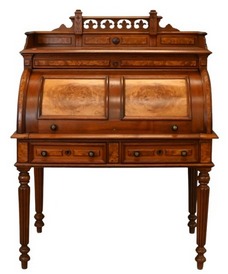Victorian Walnut and Burlwood Cylinder Roll Top Desk