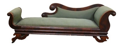 having carved eagle back, rolled arms with accanthus and foliate carved fronts, all raised on cabriole legs with foliate and wing carved legs ending in claw and ball feet (upholstery worn, chips, and cracks, one foot repaired)