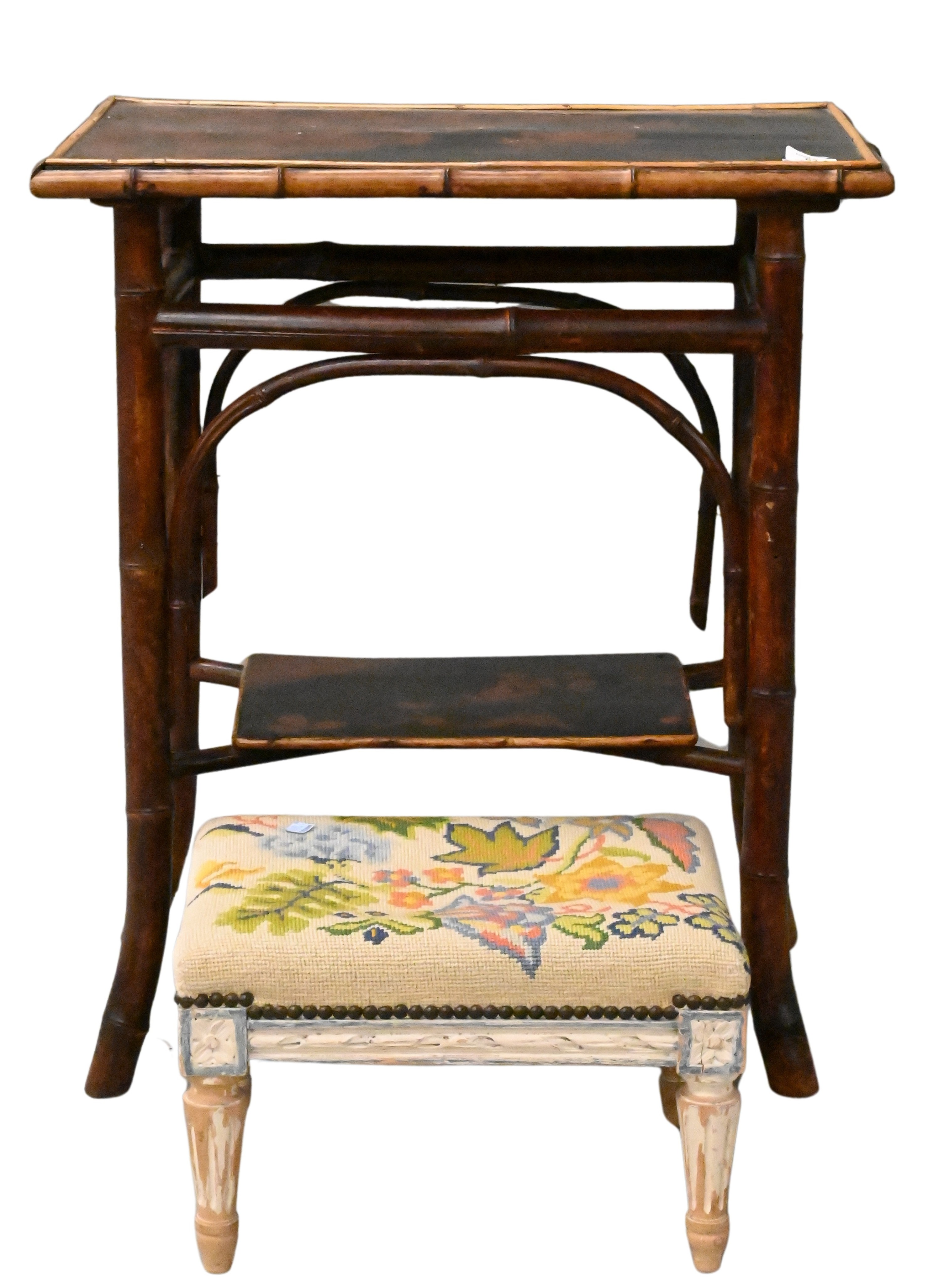 having needlework top set on polychrome painted base