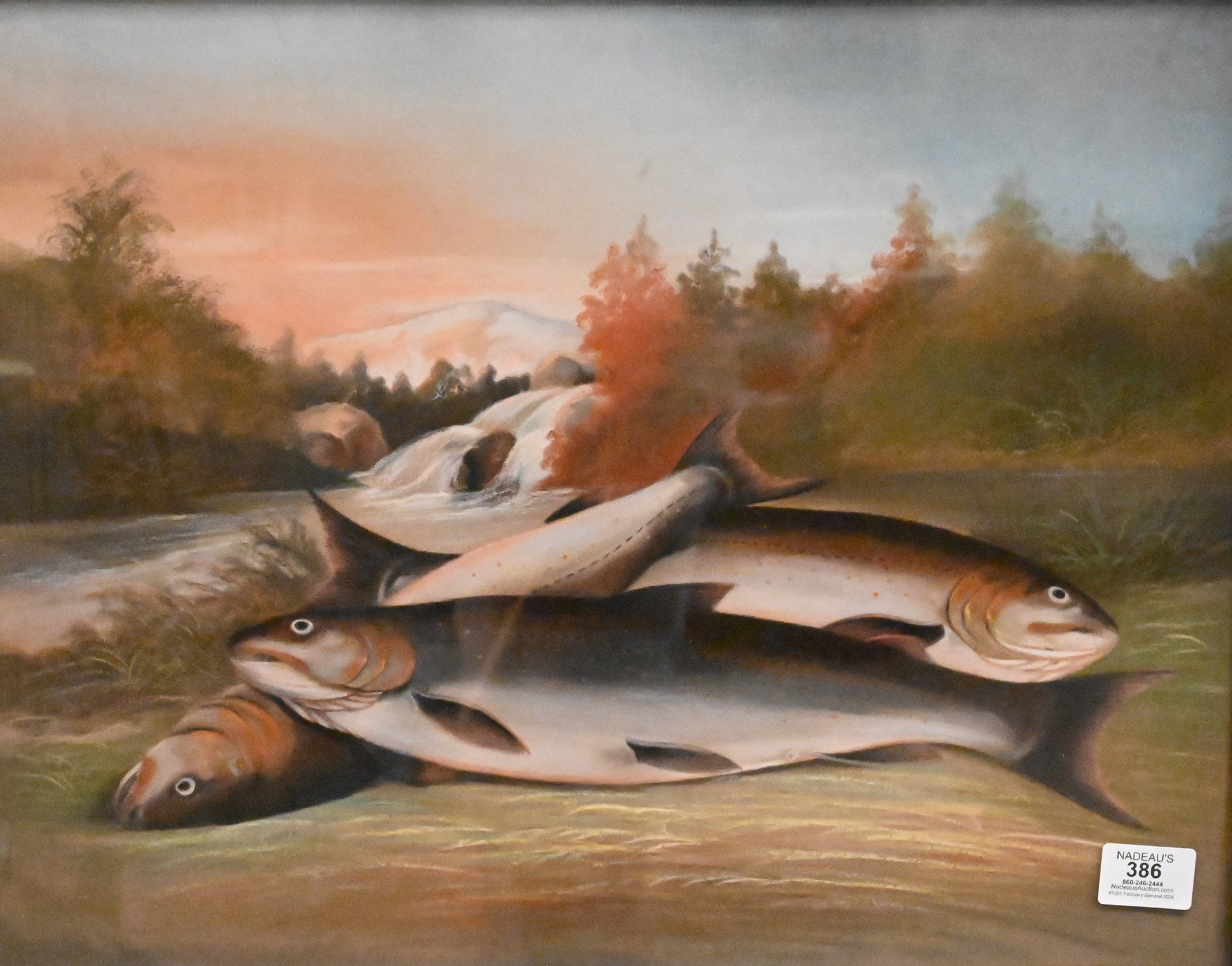 Still Life of Three Fish in a Fall Riverside Landscape