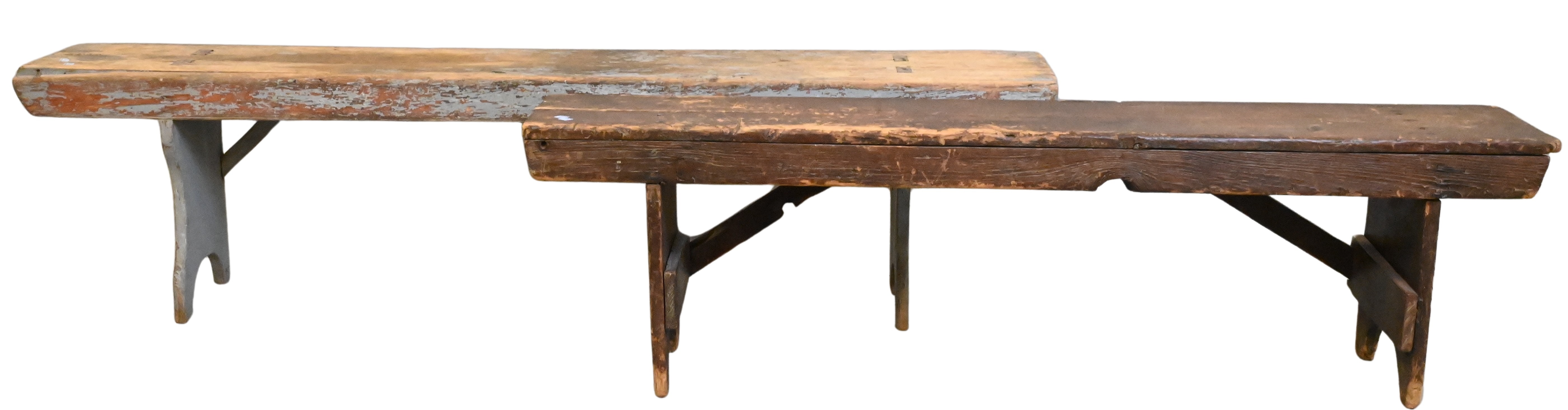 to include four benches, two spool racks, a hanging shelf, along with five additional primitive pieces