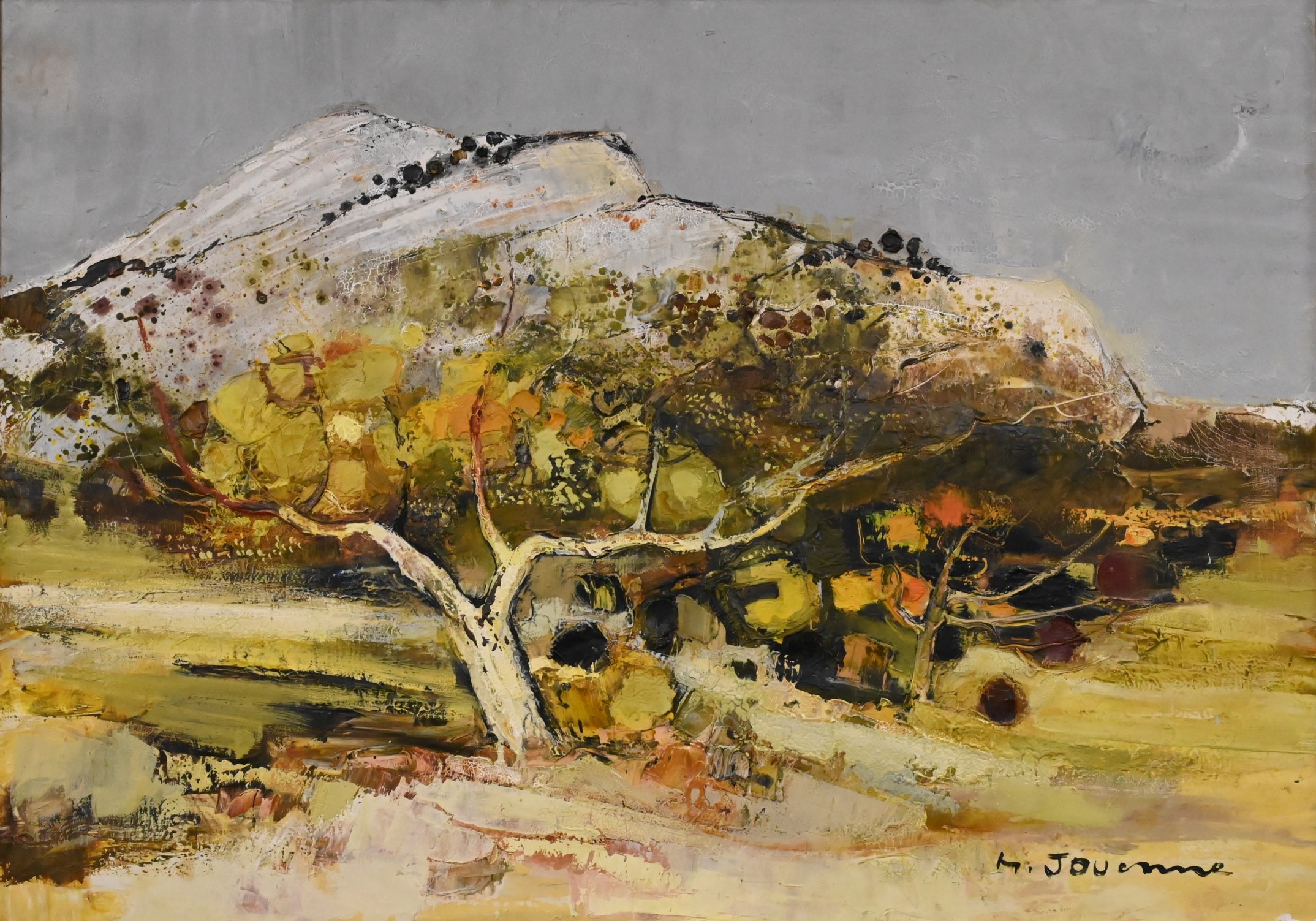 signed lower right M. Jouenne, signed and titled on back of canvas, Salon Des Independants, 1978 paper label on back