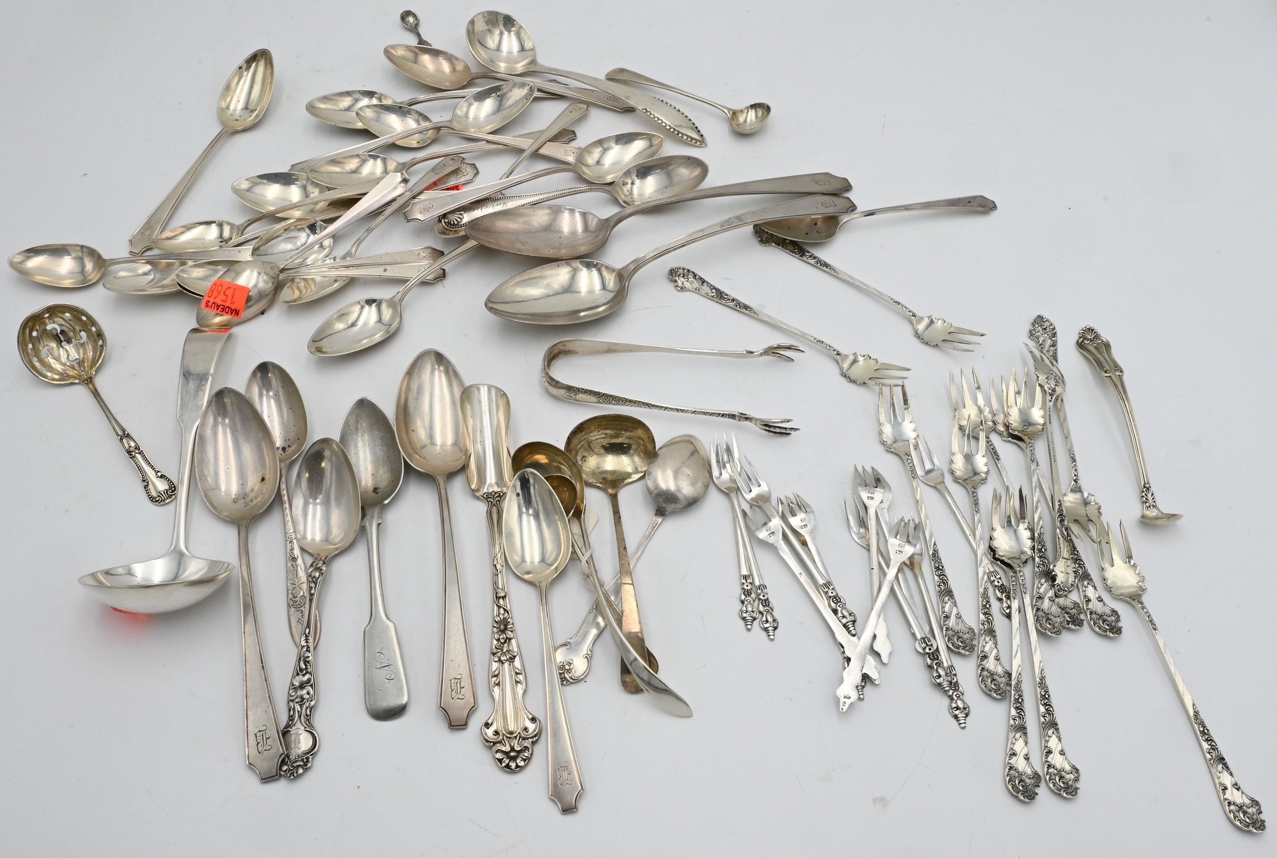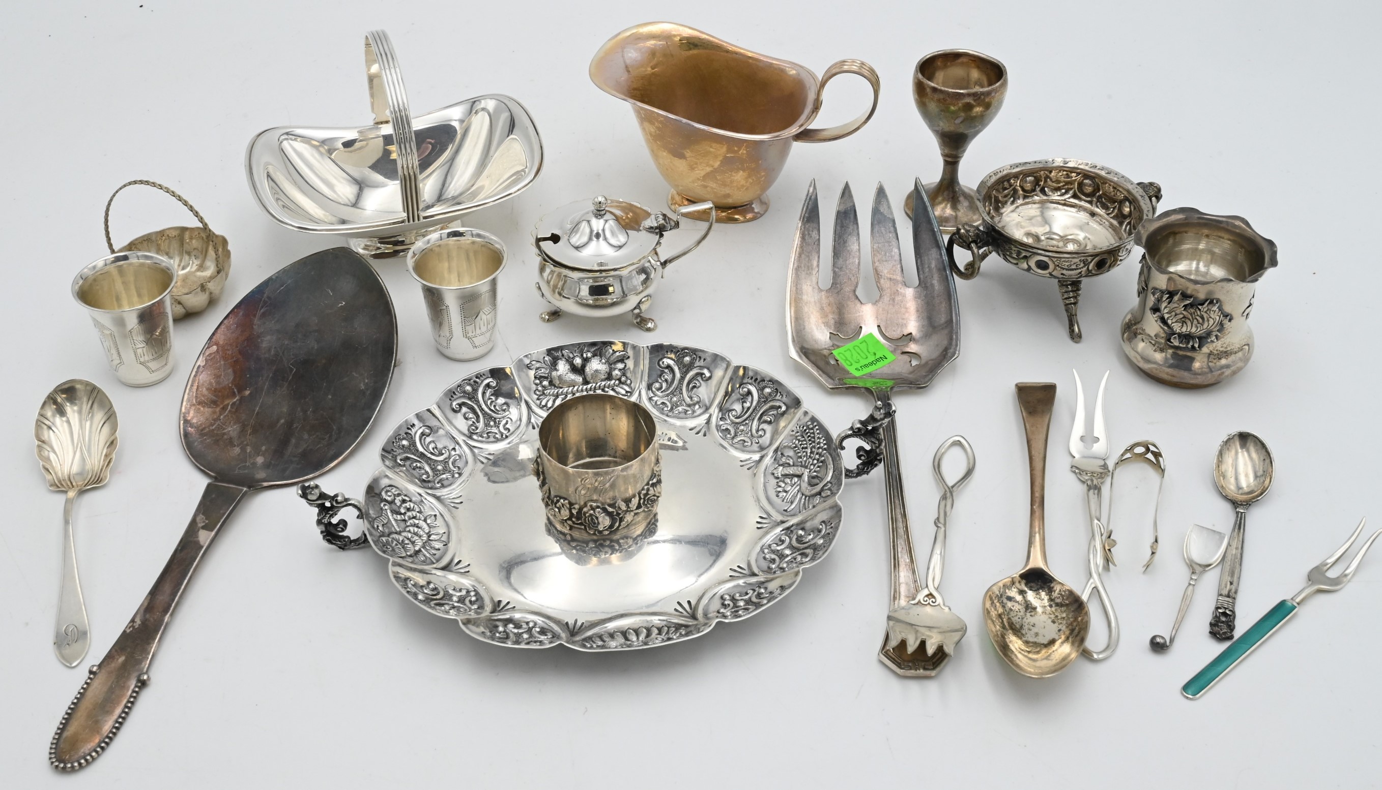 Tray Lot of Sterling Silver, with Two Russian Silver Cups, English Spoon, “Stephen Adams 1802”, Danish server etc, Provenance: Julius H Jacobson II a Fifth Avenue Estate.