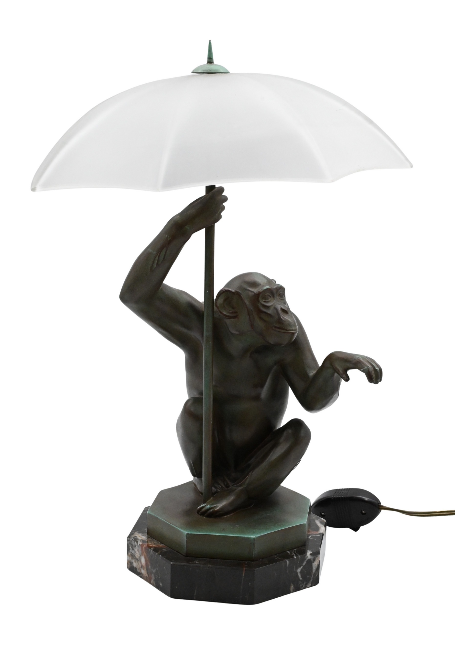 “Rain” Monkey with Umbrella Table Lamp, 1925