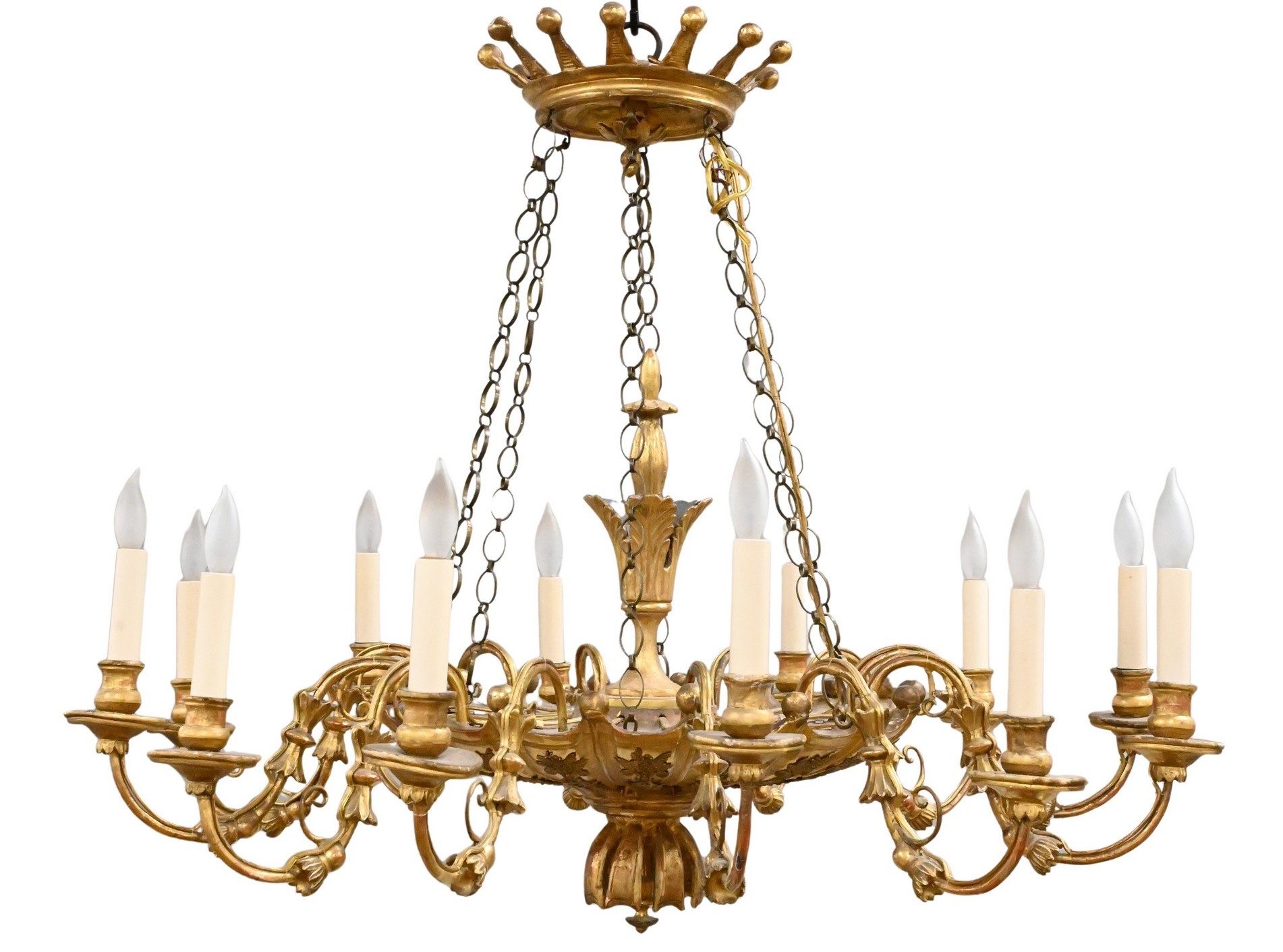Giltwood Twelve-Arm Chandelier with Scalloped Dish, Continental, Possibly Italian, Early 20th Century