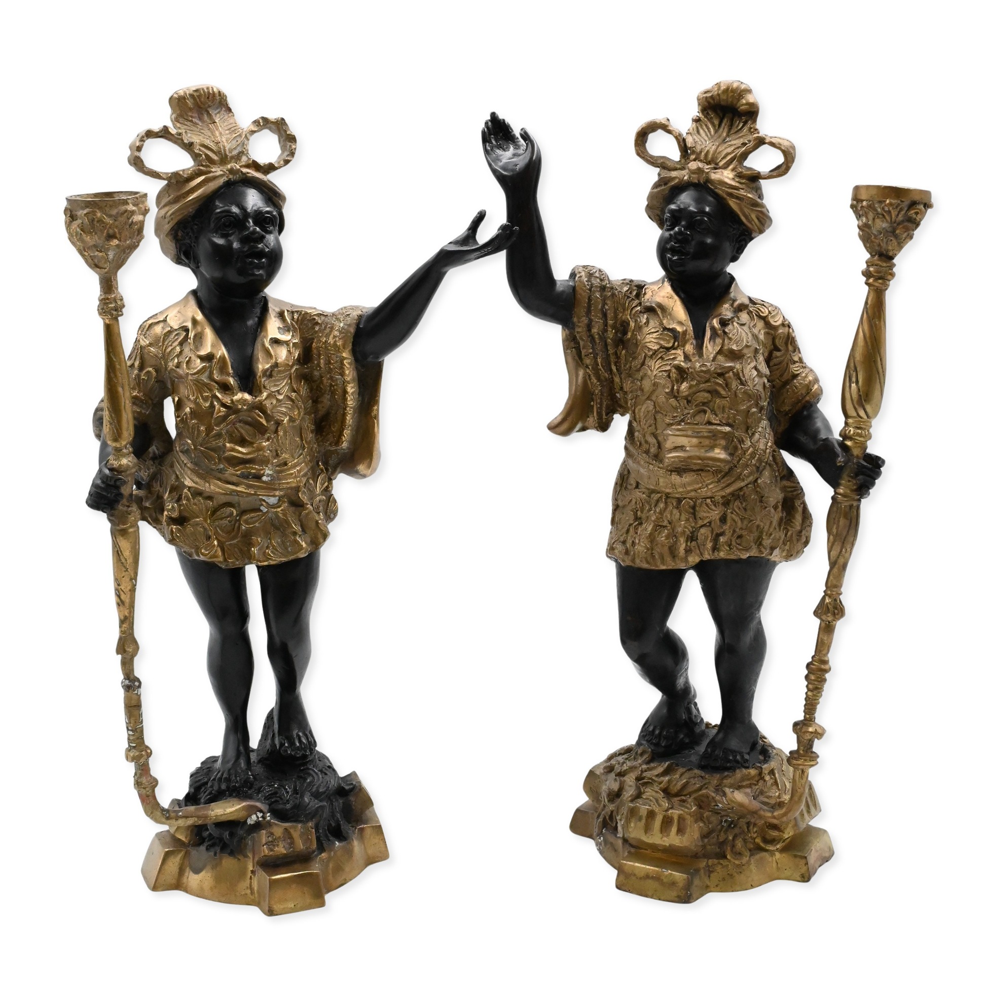 Near Pair of Italian Bronze Blackamoor Figural Torchbearers