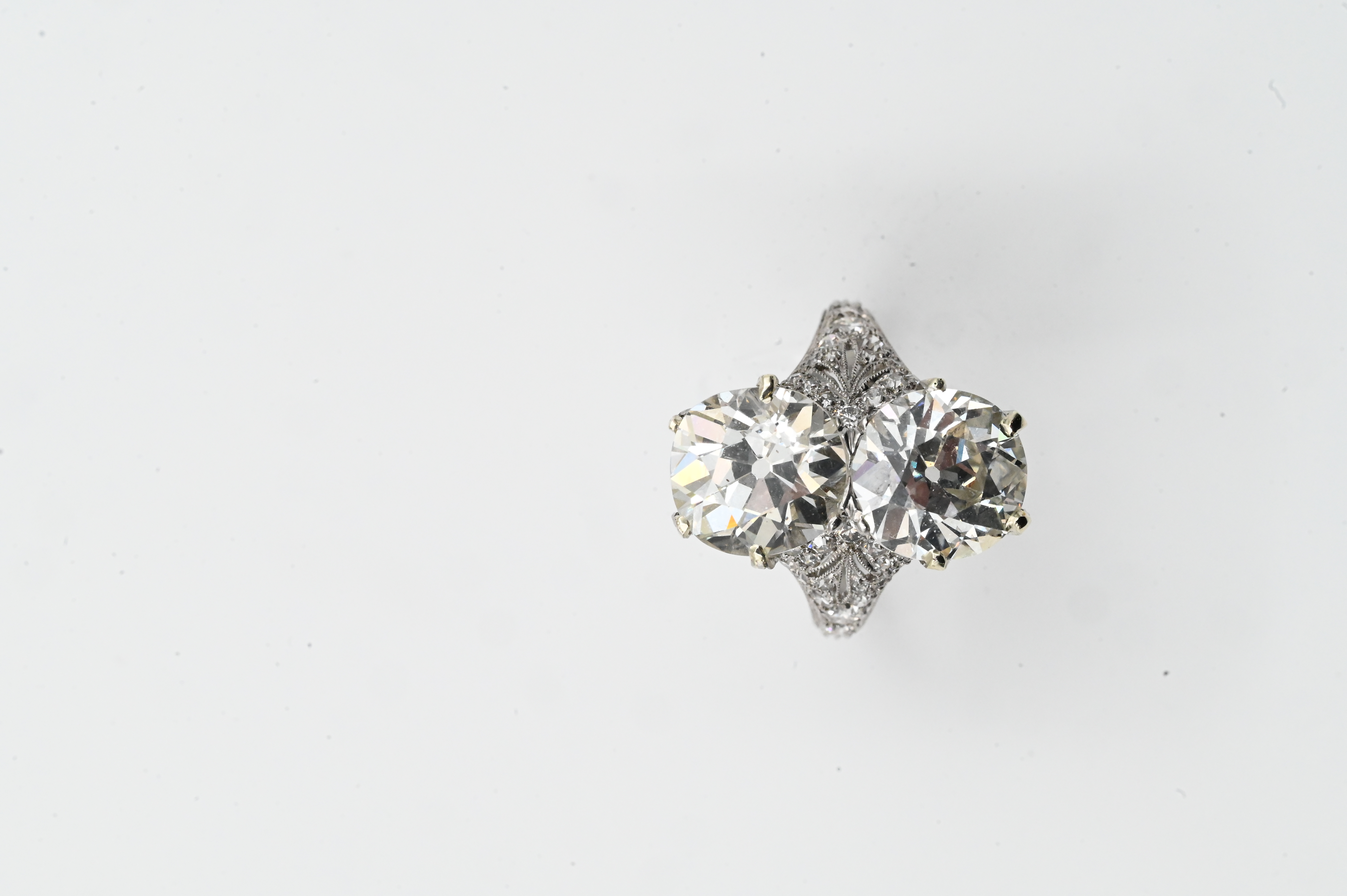 height 2 7/8 inches; diamonds are approximately 6-10 carats with an approximate color and clarity range of H-I, Sl1-SI2; 32.06 grams total weight