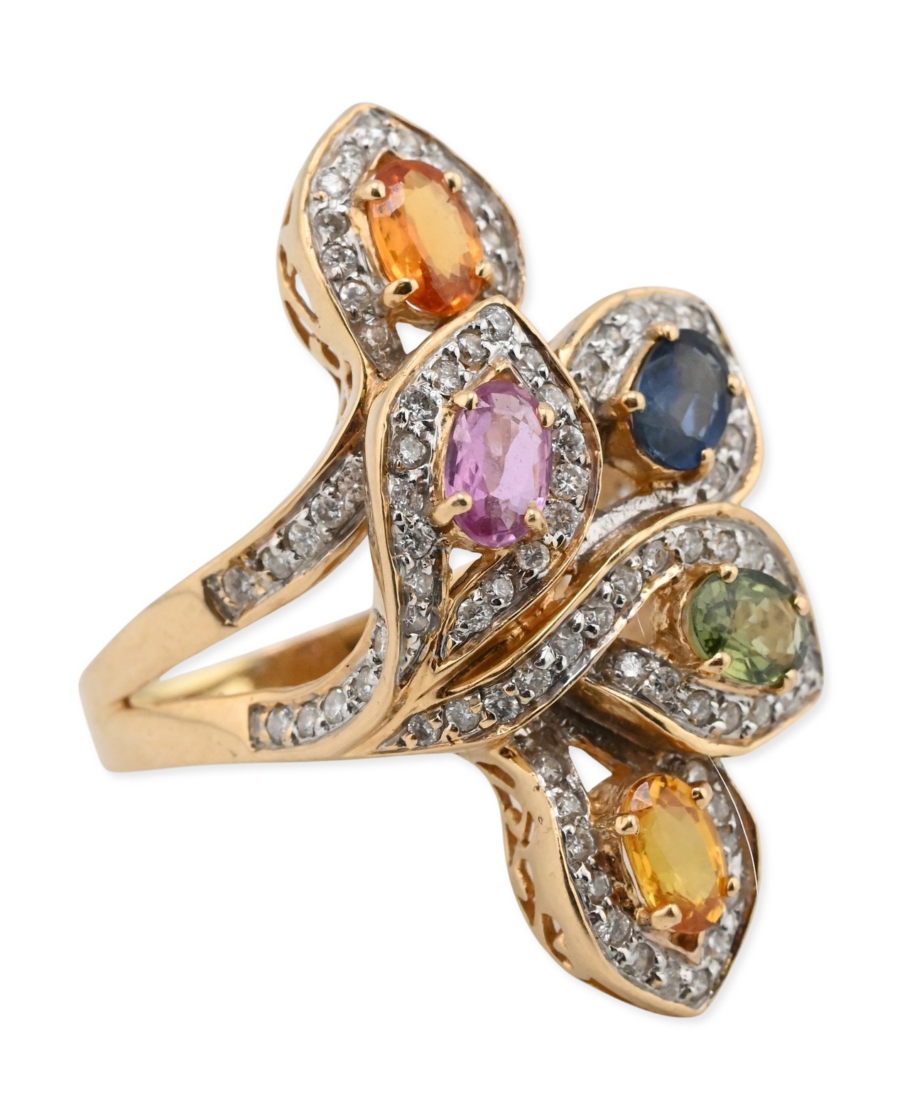 Yellow Gold, Silver Topped Gold, Enamel, and Diamond Floral Spray Brooch