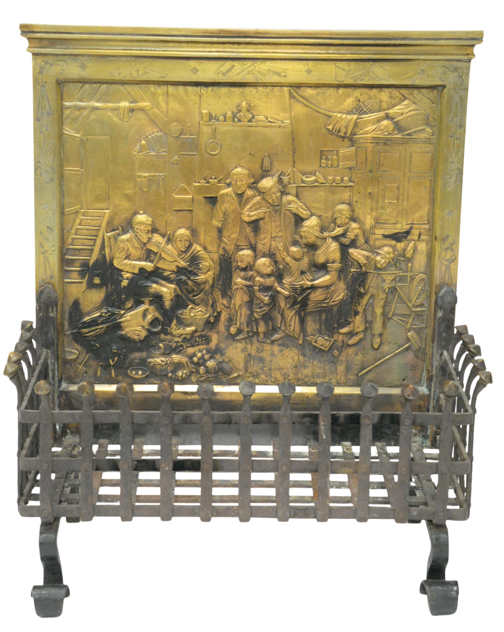 Large Bronze Relief Fireback, in rectangular form, friends and family playing music with iron gate in front, height 30 inches, diameter 11 inches, length 26 inches.