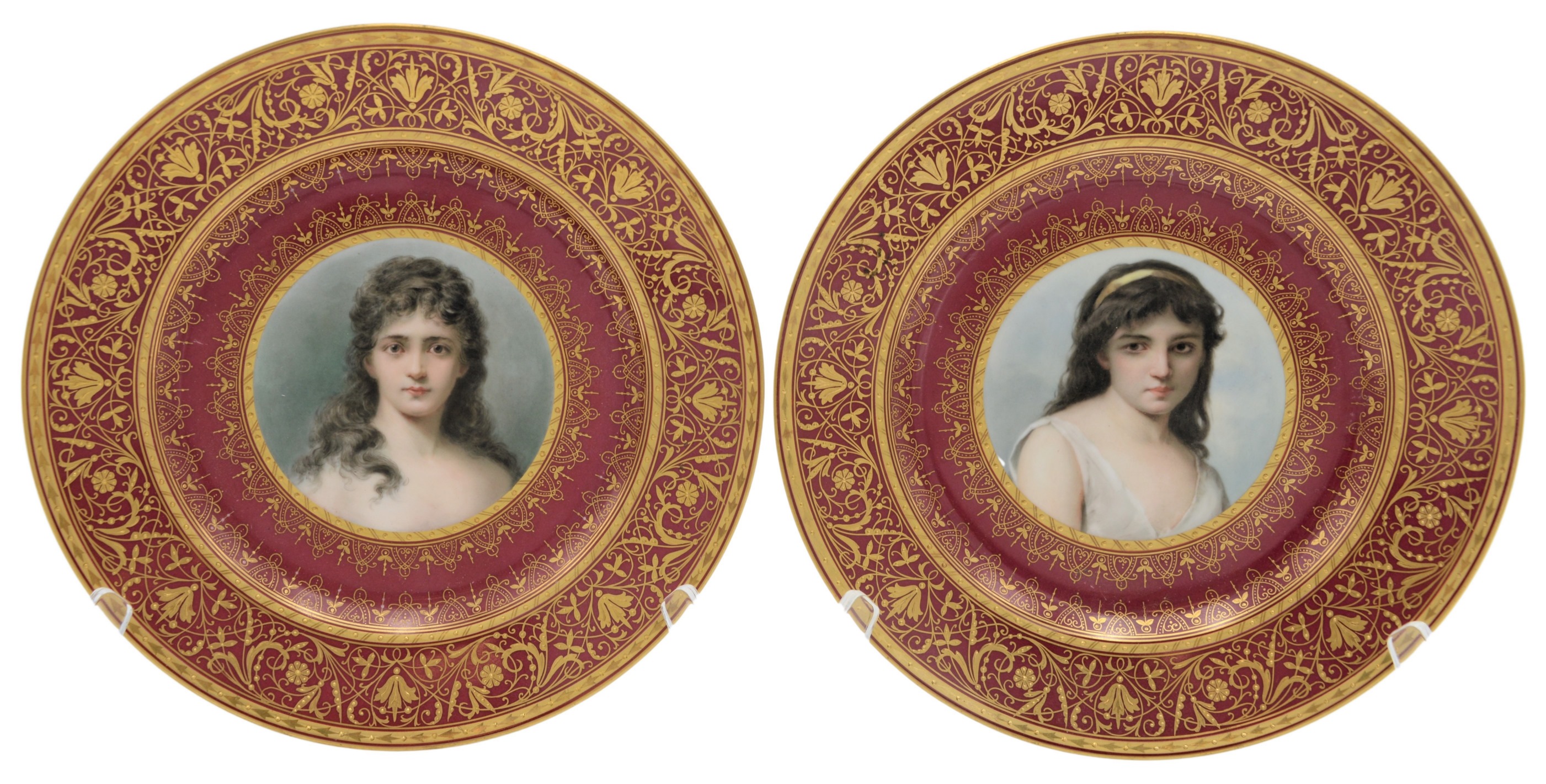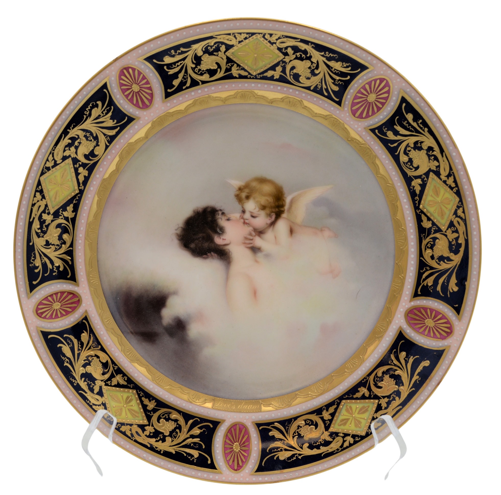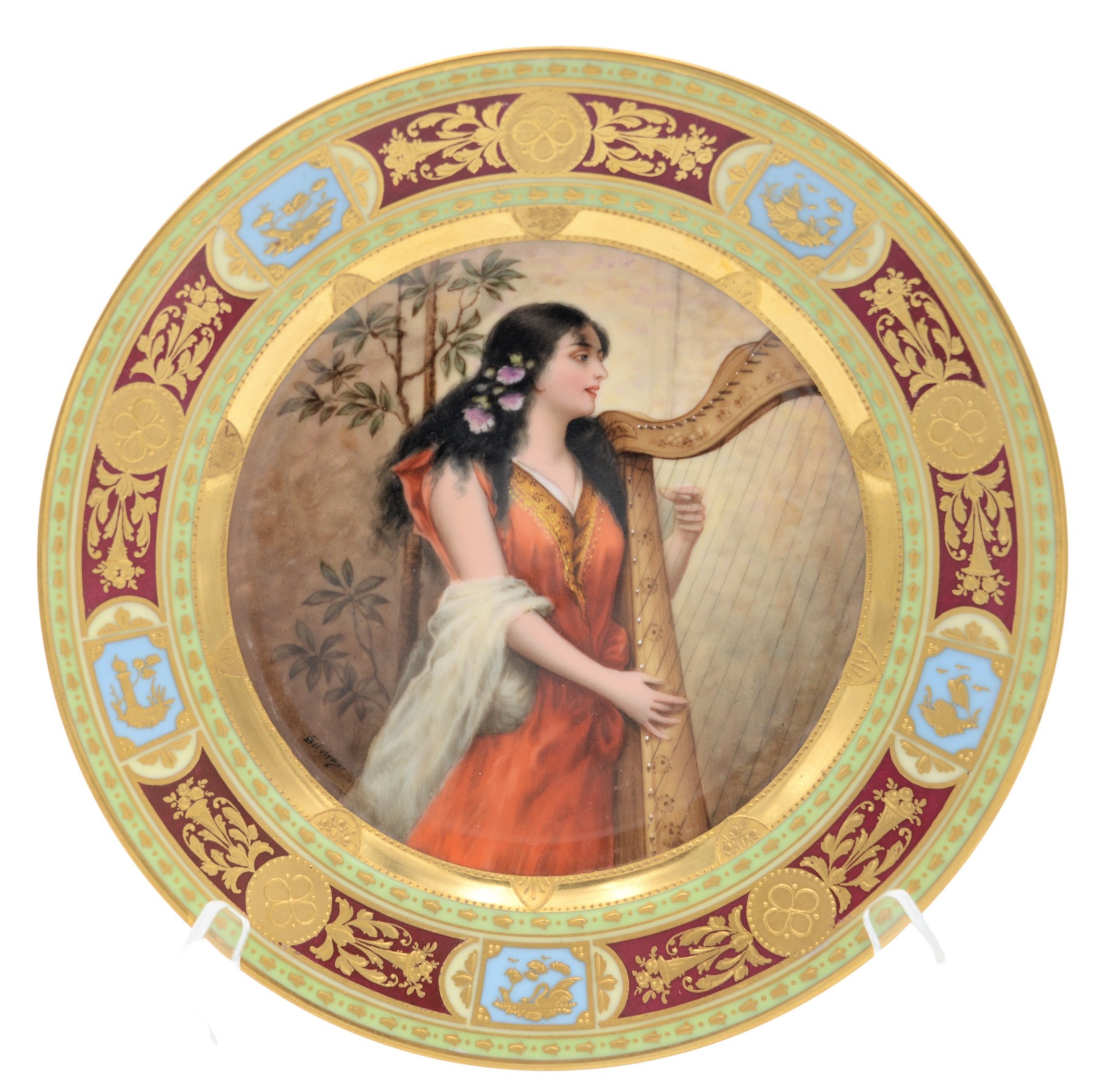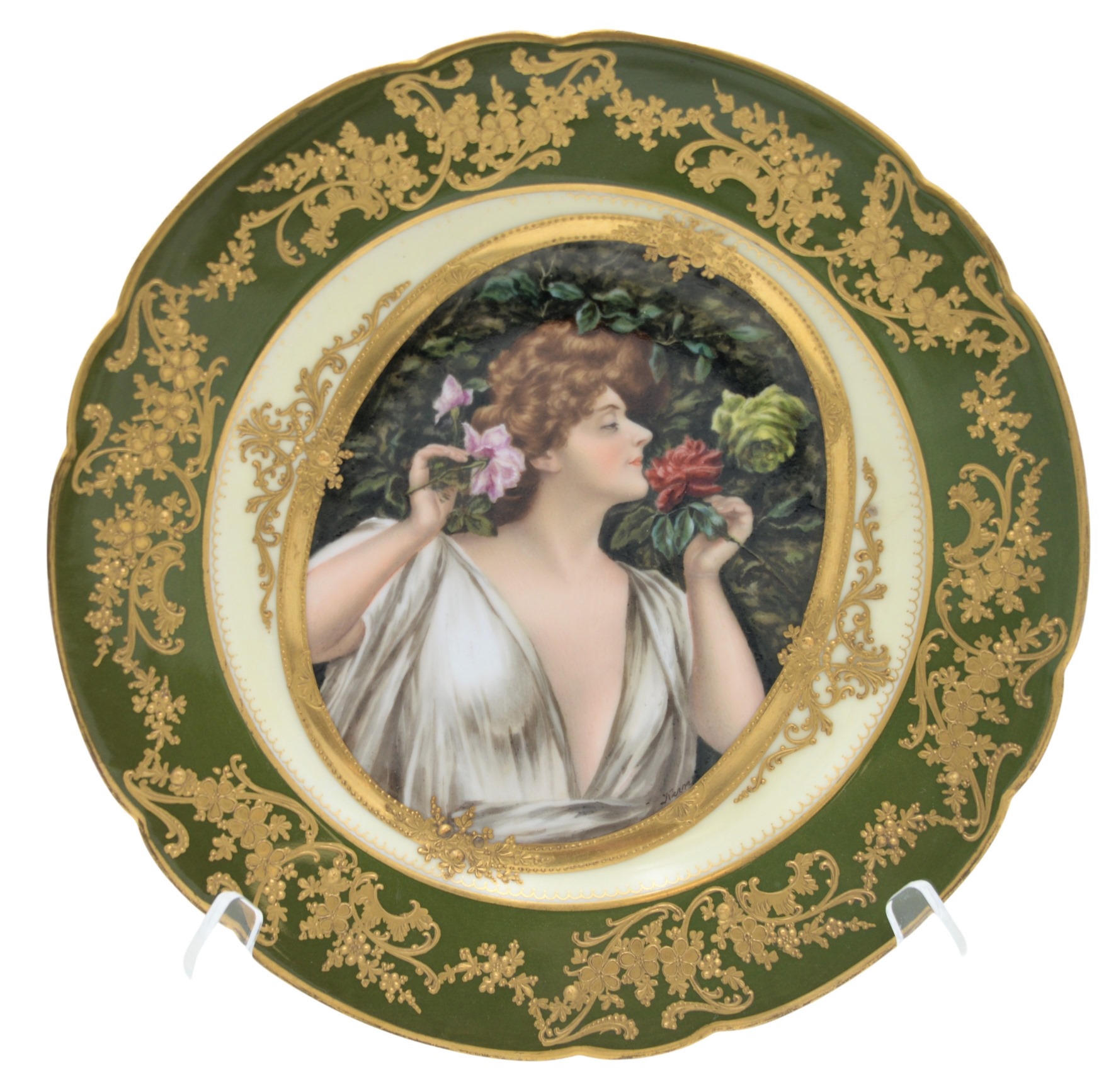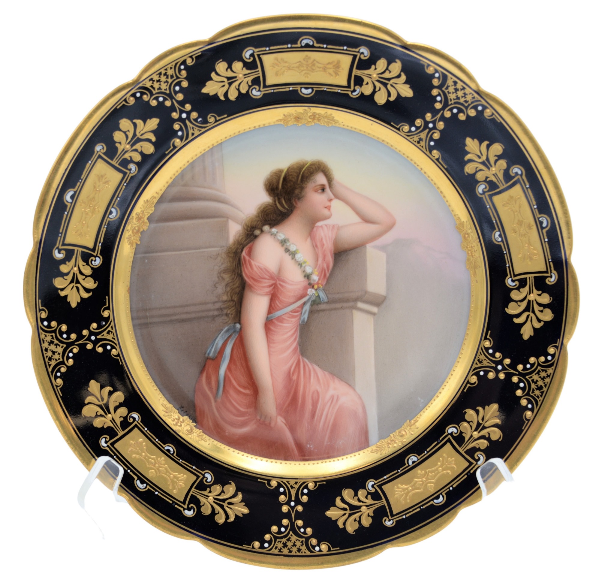 Wagner Royal Vienna Portrait Plate, “Fruhling”, partially clad young woman, signed “Wagner” lower right and stamped with Royal Vienna beehive on reverse, diameter 9 3/4 inches.