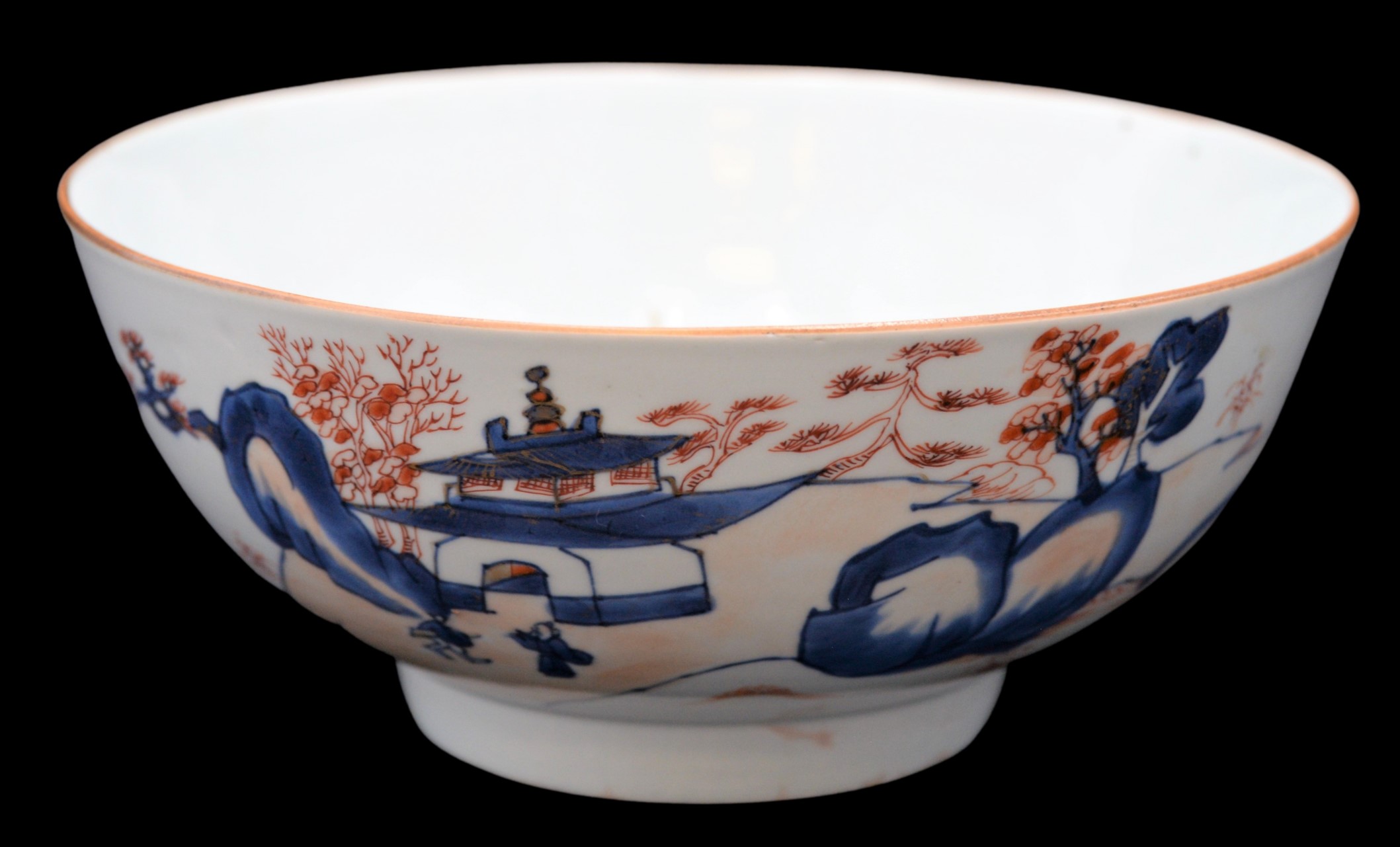 Chinese Porcelain Bowl, having russet red and blue painted scene, height 4 1/4 inches, diameter 9 1/2 inches.