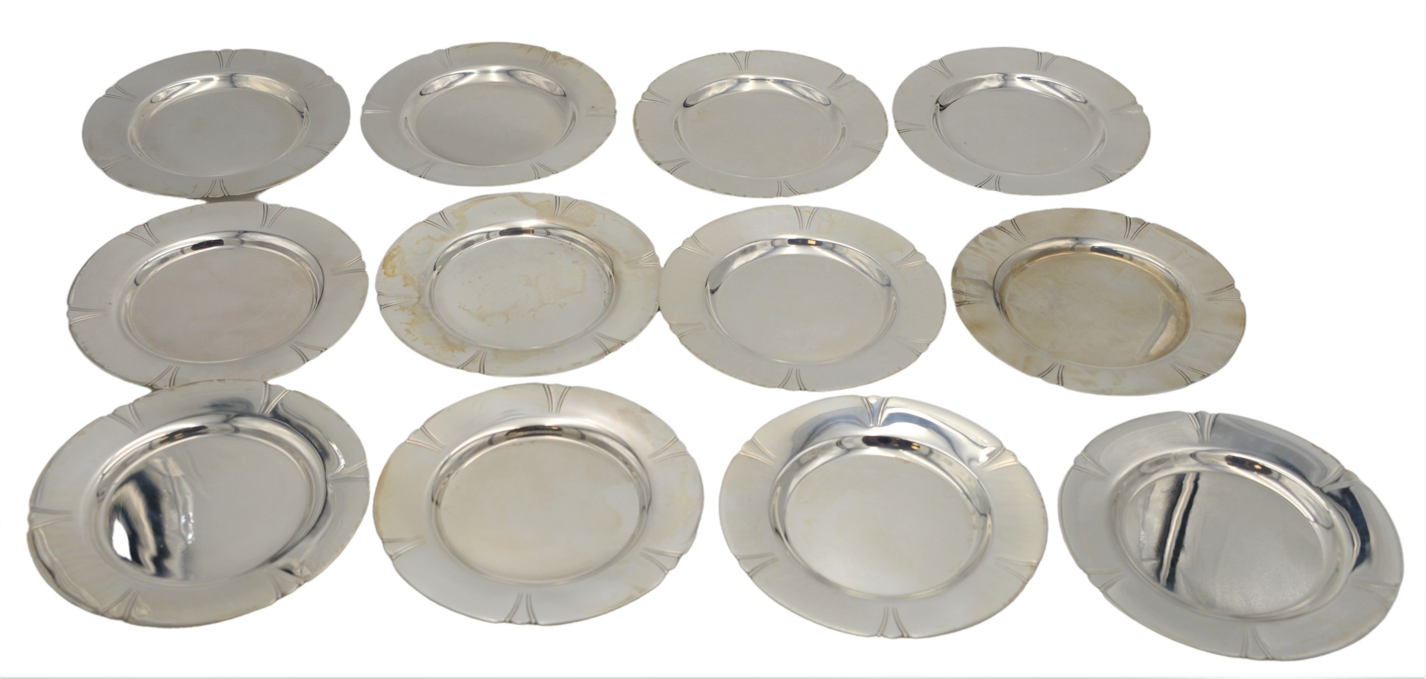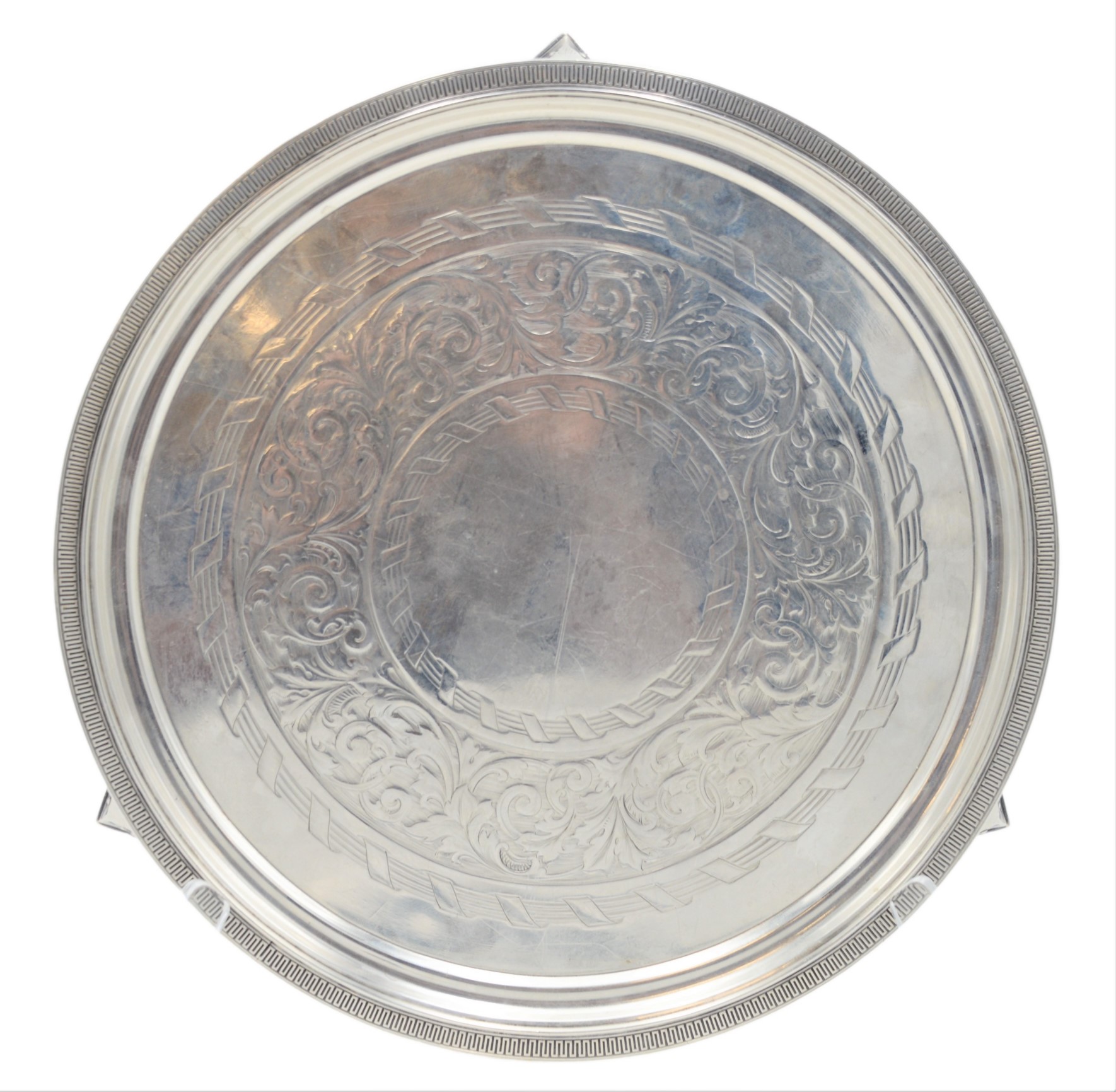 Tiffany & Company Sterling Silver Footed Salver, round with incised foliate design on diamond shaped feet, marked Tiffany & Company, English Sterling 1207, 1519, diameter 10 inches, 16.3 t.oz.