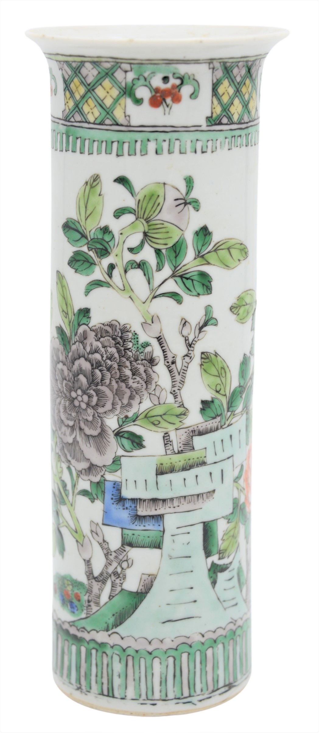 Chinese Famille Verte Cylindrical Vase, 19th Century, the body decorated in