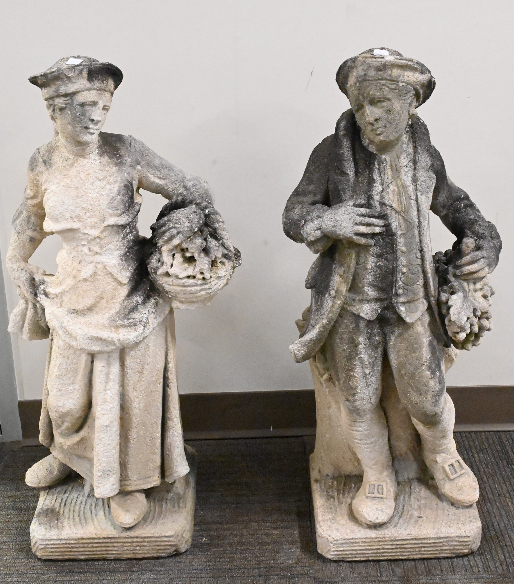 Pair of Cement Outdoor Classical Figures, one male and one female, height 34 inches. Provenance: Property from a private New York collection sold to benefit charitable foundations.