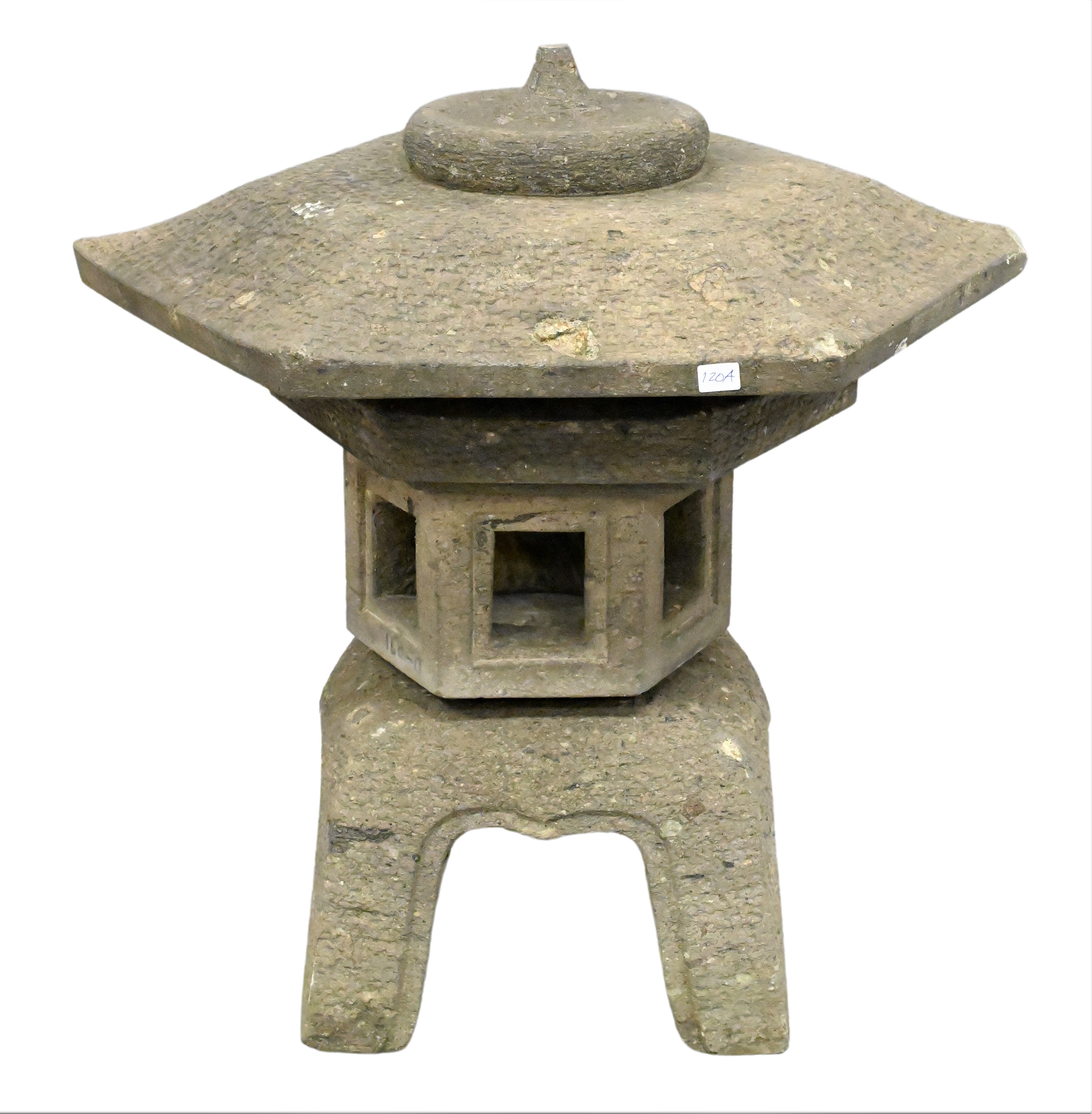 Four Piece Outdoor Cement Pagoda, height 24 inches, diameters 23 inches. Provenance: Property from a private New York collection sold to benefit charitable foundations.