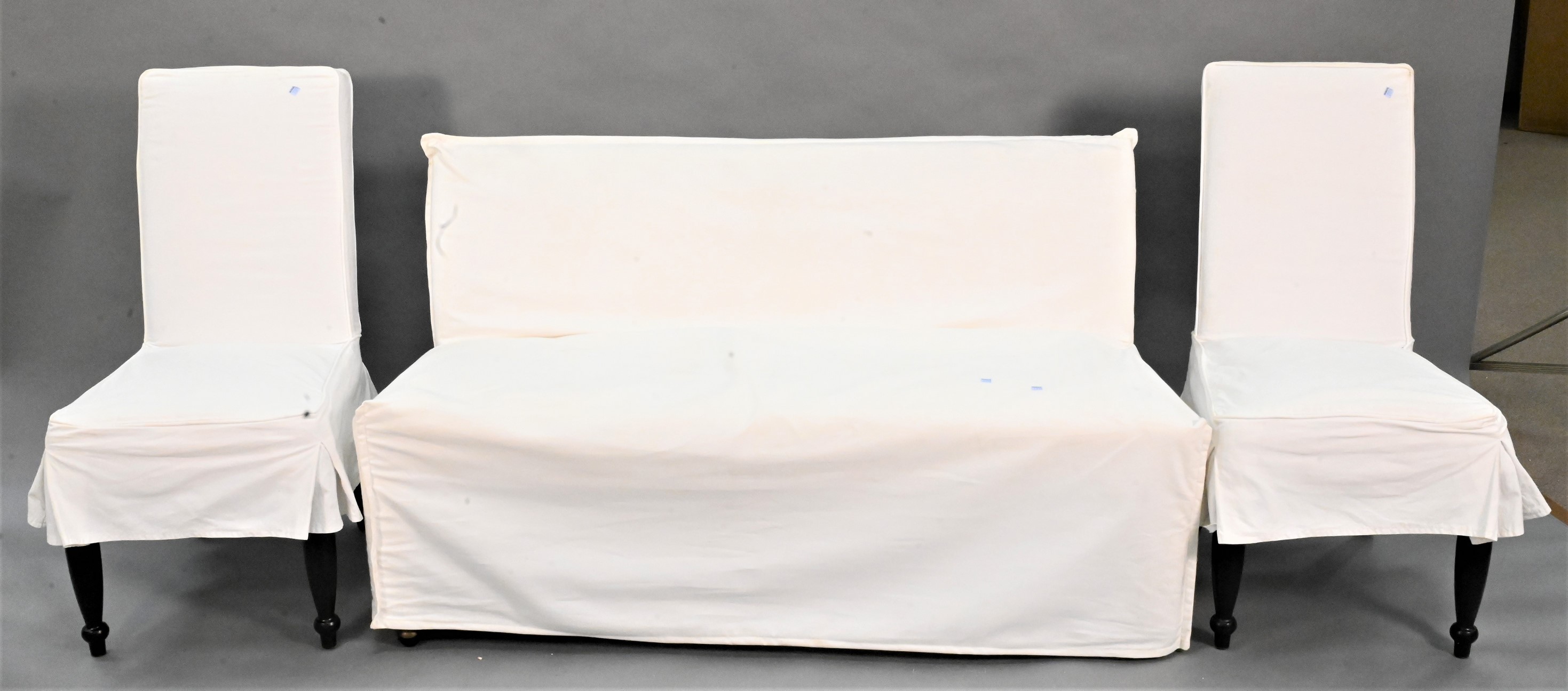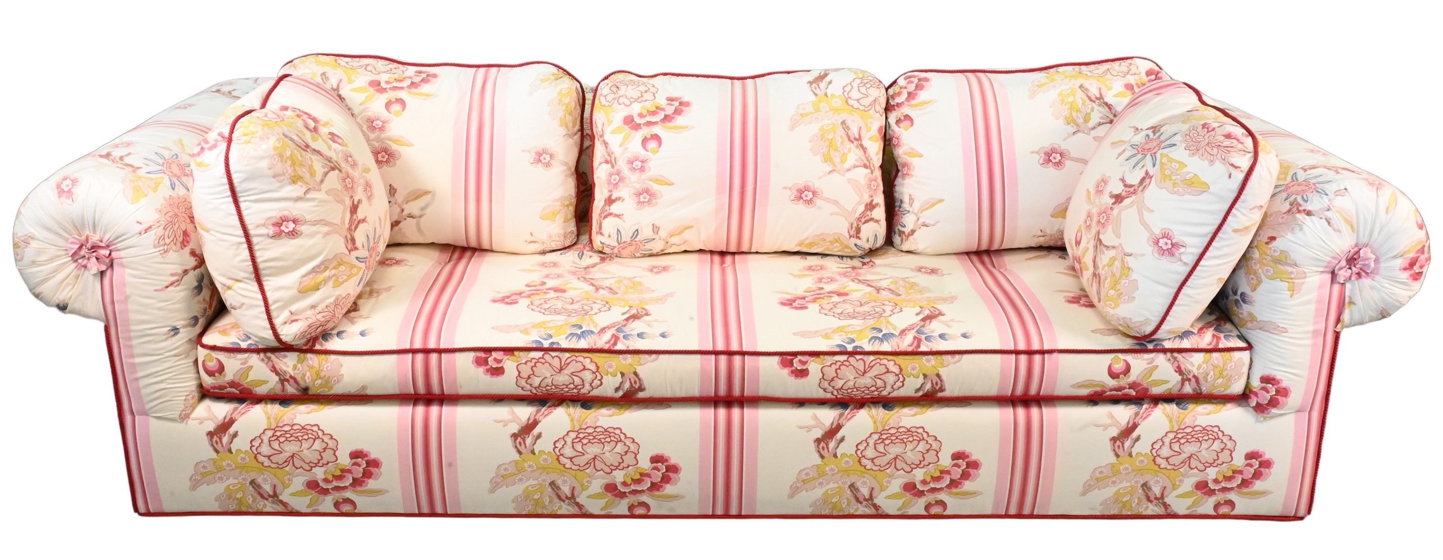 Custom Chintz Upholstered Sofa, having floral upholstery, three down fill cushion back along with a long cushion, height 29 inches, length 104 inches. Provenance: Property from a private New York collection sold to benefit charitable foundations.