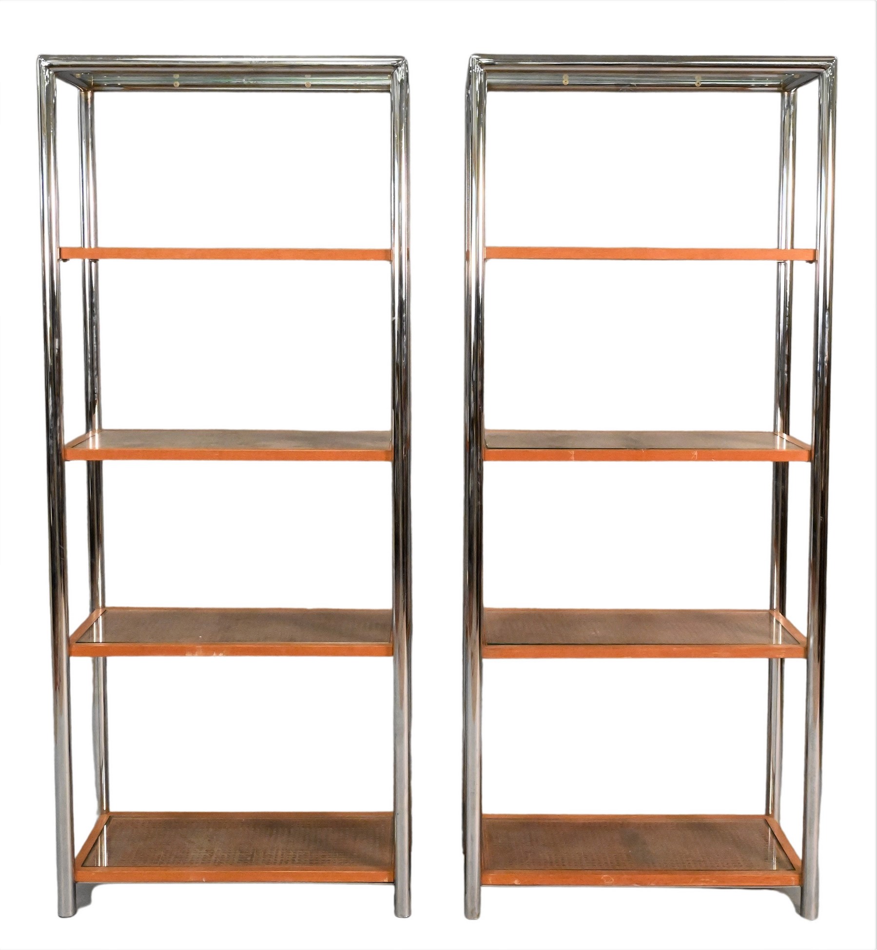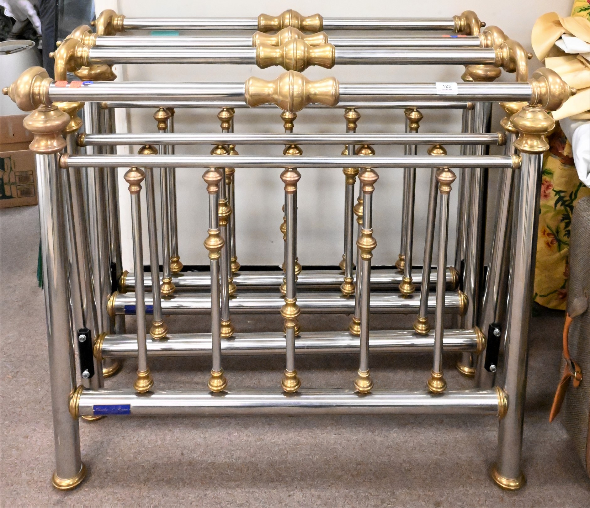 A Pair of Chrome and Brass Twin Beds, each with a scrolled head and footboard over two tubular construction, height 37 inches, width 41 inches. Provenance: Property from a private New York collection sold to benefit charitable foundations.