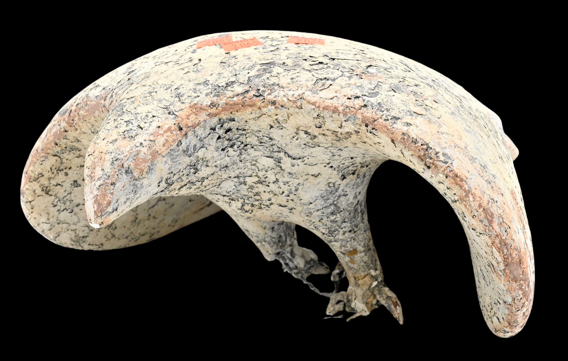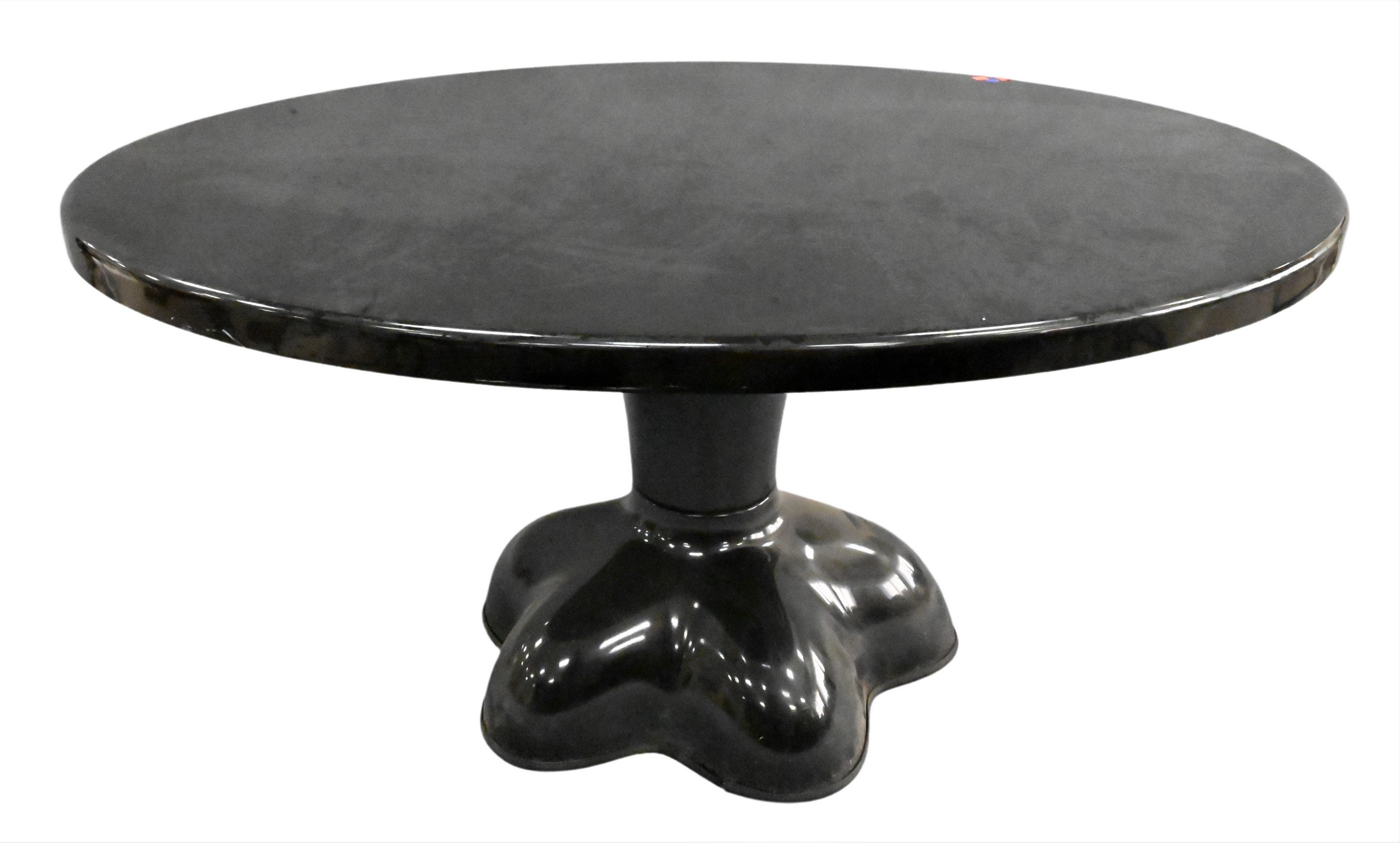 Contemporary Composition Molded Black Plastic Pedestal Base, having oval top on a tapering stem with large ribbed domed foot, overall fair condition, scratches, areas to top dirty, some rubbing, height 29 inches, width 57 inches. Provenance: Property from a private New York collection sold to benefit charitable foundations.