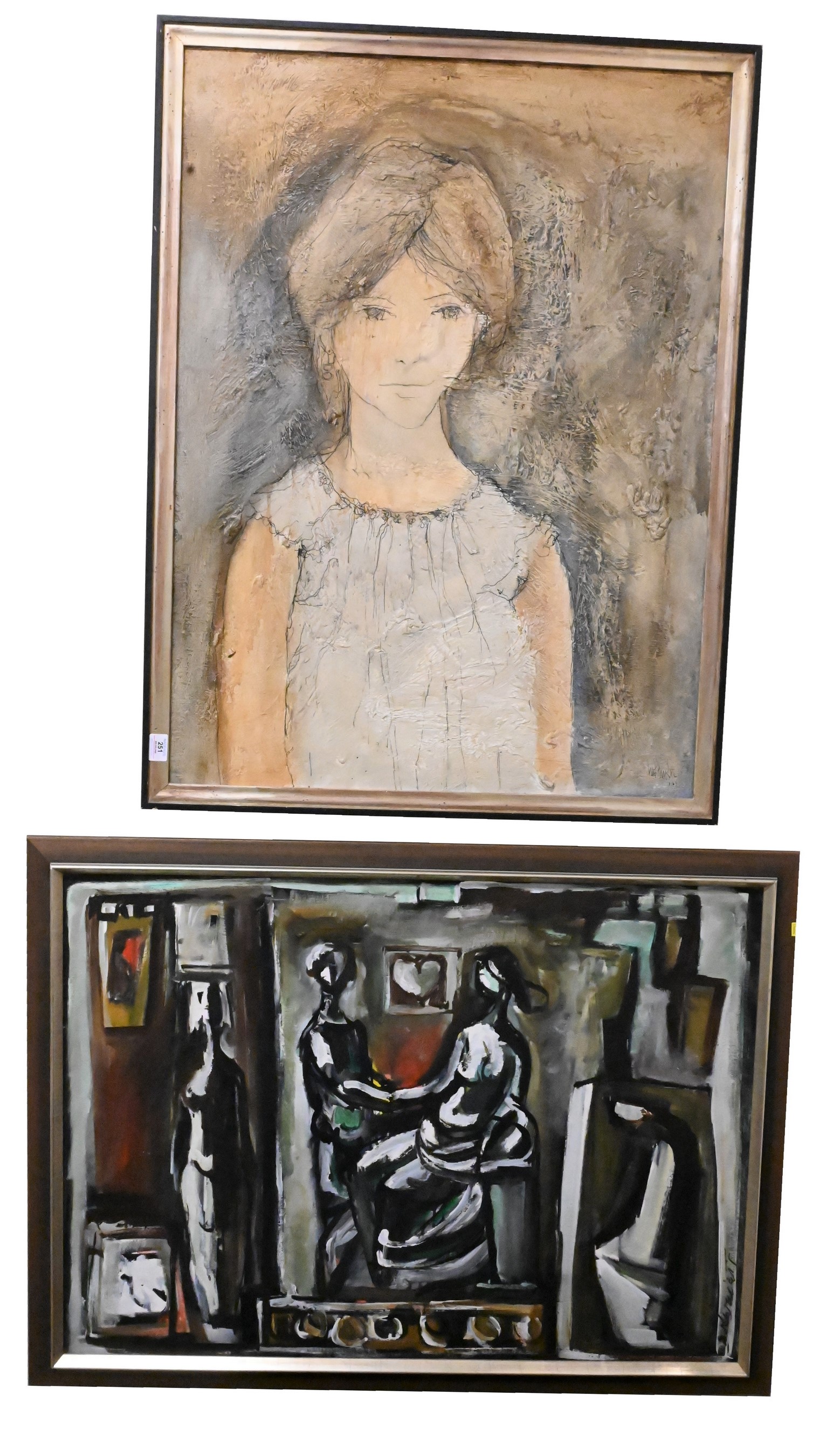 Two Framed Paintings, to include a Branko Kovacevic (1911 – 1988) oil on canvas, Dubrovnik Frana Suplia 73, 29″ x 40″, signed lower right and on back; along with a portrait of a girl, signed illegibly, 40″ x 30″, with autographed Branko Kocalevic Gallery Catalog, 1971,