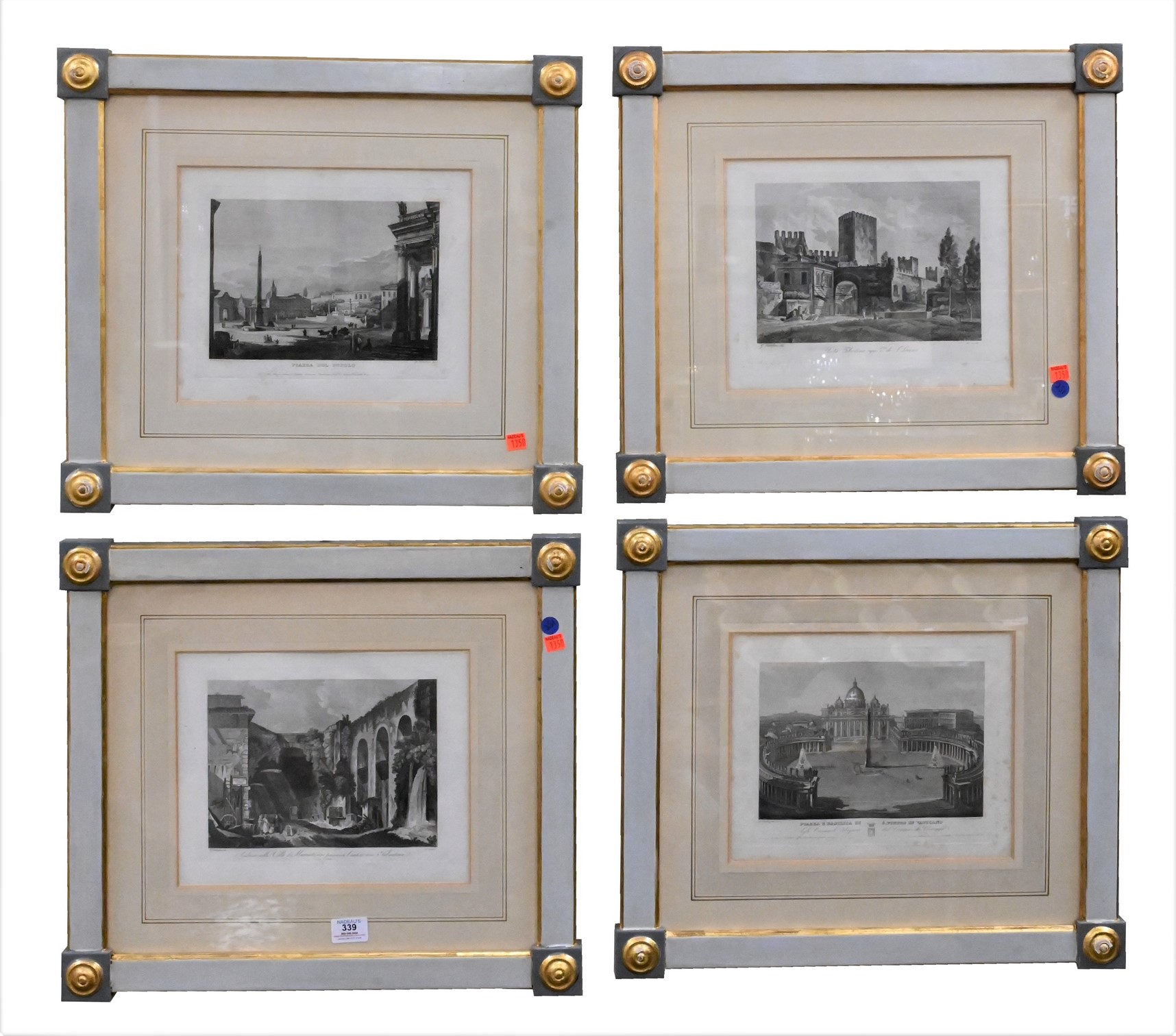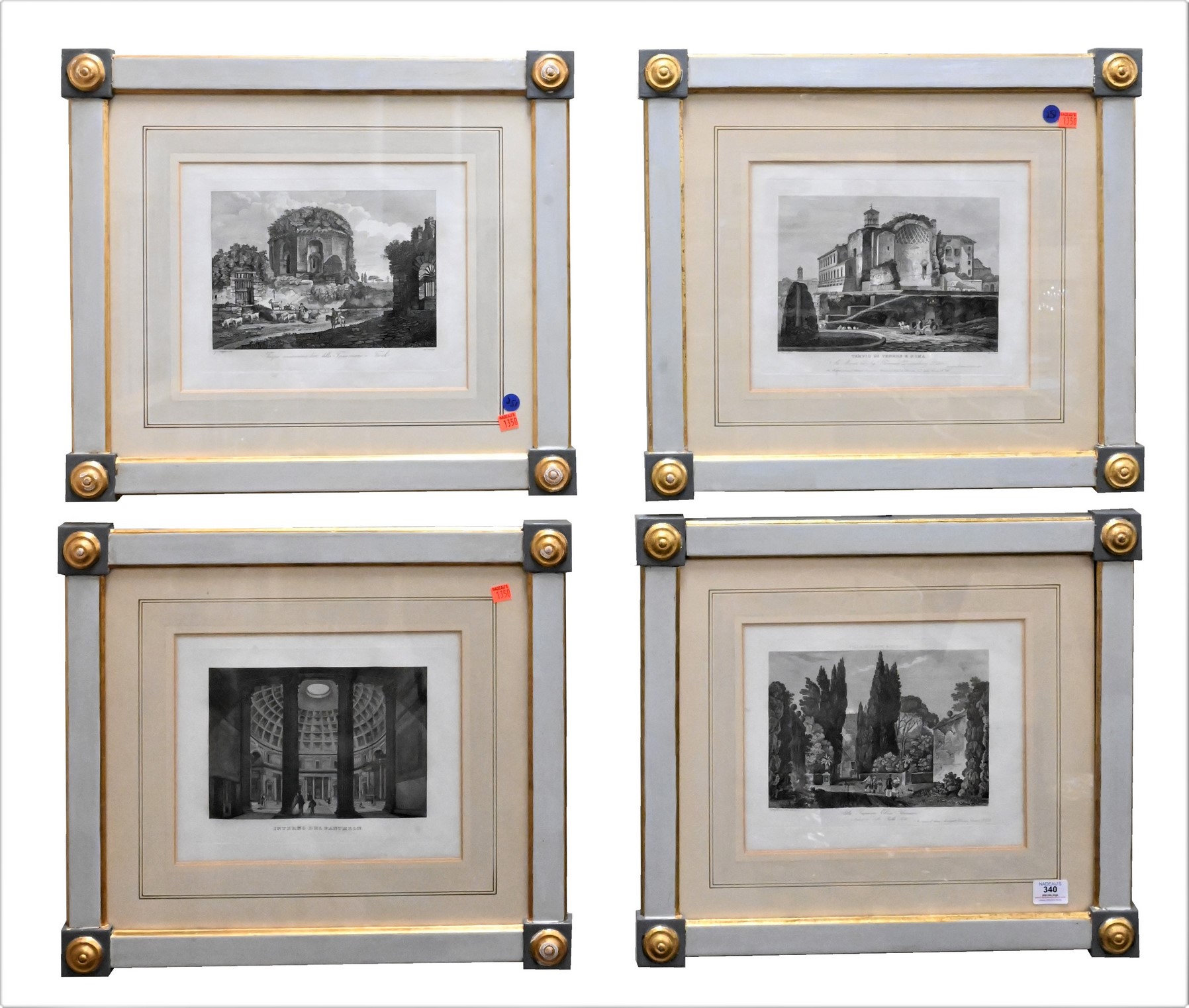 Set of 12 Italian School Studies of Ancient Temples, engravings, to include Piazza Del Popolo; Porta Tiburtina; Basilica; Nuova Cascato; Sepolcro Albano; Basilica Laterans; Piazza Colonna; Stewart; Ingresso Alla Villa Borghese; Panteon Di Agrippa; Ponte Lucanoe; along with Androne Nella Villa Search instead for Piazza Del Popolo; Porta Tiburtina; Basilica; Nuova Cascato; Sepolero Albano; Basilica Laterans; Piazza Colonna; Stewart; Ingresso Alla Villa Borghese; Panteon Di Agrippa; Ponte Lucanoe; along with Androne Nella Villa, each 8″ x 11″, foxed, overall fair condition. Provenance: Property from a private New York collection sold to benefit charitable foundations.
