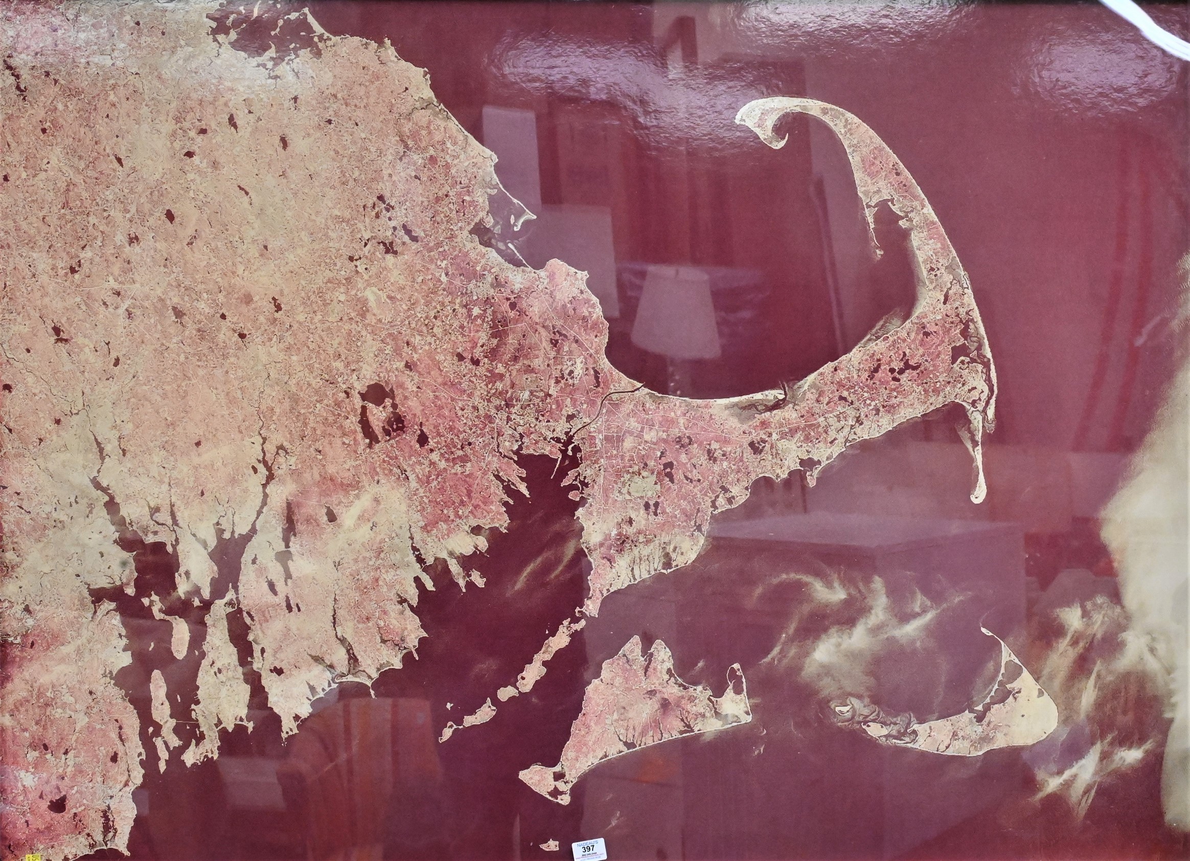 Set of Two National Aeronautics and Space Administration (NASA) Satellite Images, to include Cape Cod, 1980, 41″ x 68 7/8″; along with Soda Springs, Idaho, 1980, 42 3/4″ x 39 1/2″.