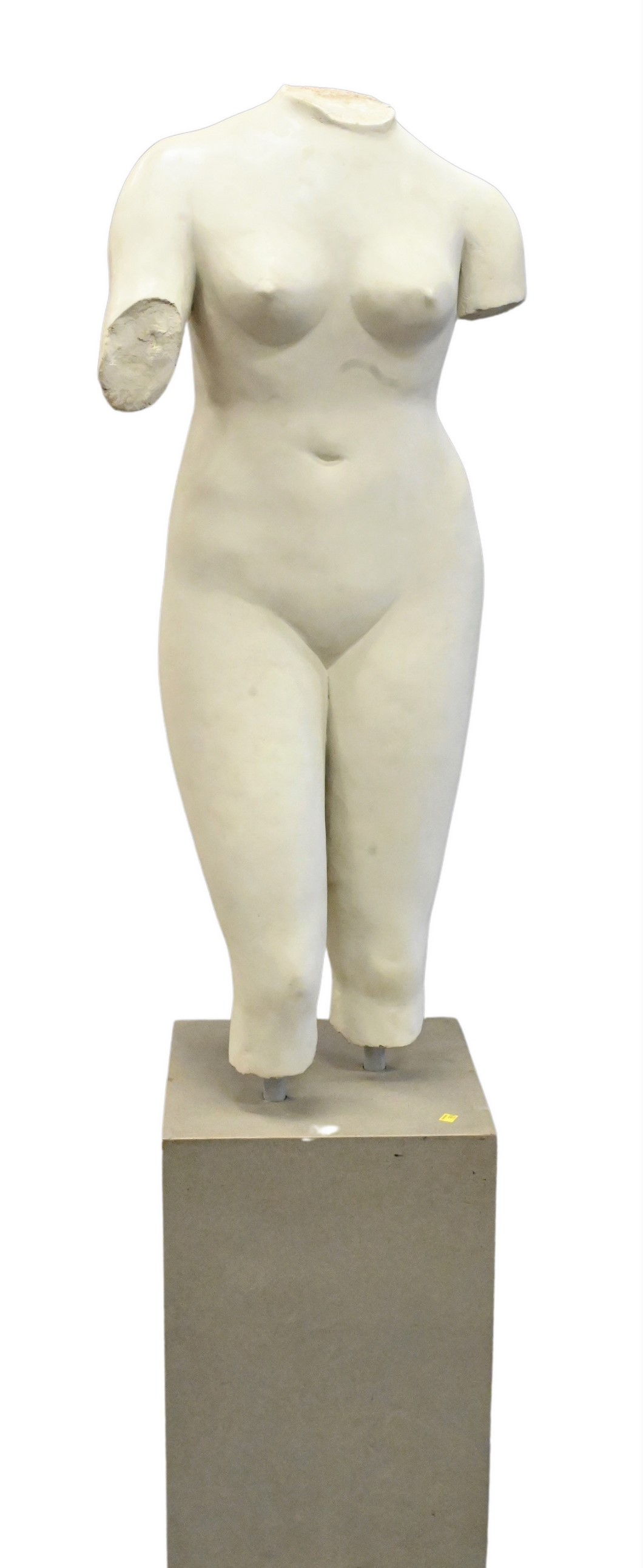 Judith Shea (b. 1948), cast stone sculpture, “Venus”, nude woman, edition #3/3, 1989, total height 68 inches, base 15″ x 15″. Provenance” Max Protetch 560 Broadway, New York, NY, receipt September 22, 1994, $36,000.