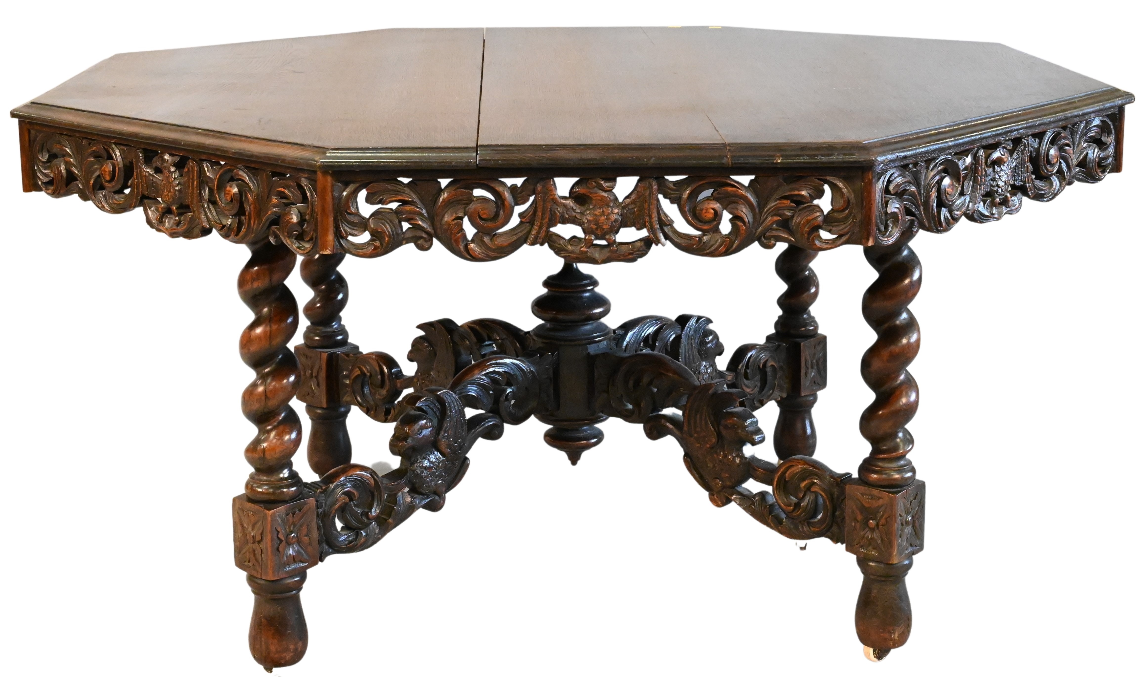 Five Northwest Coast Haida and Southwest Hopi Totem Poles, to include one having an eagle head with outstretched wings, signed “Jonathan Hopkins”, in blue, red, white and black, one small totem with owl head, Haida totem pole having seven mique handpainted faces, one longhaired Hopi kachina figure, along with one matched eagle head totem with green, red, and black wings, tallest height 64 inches.