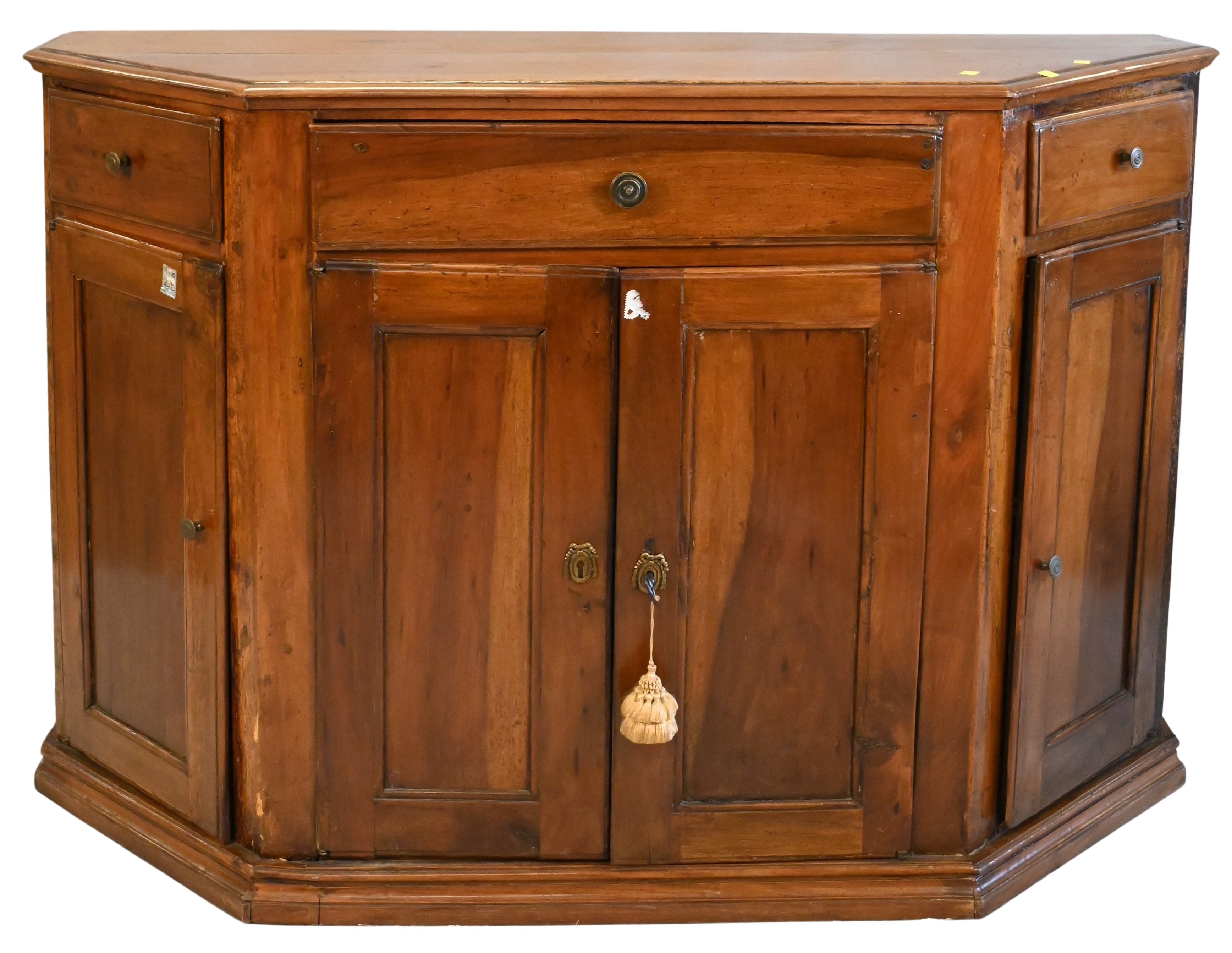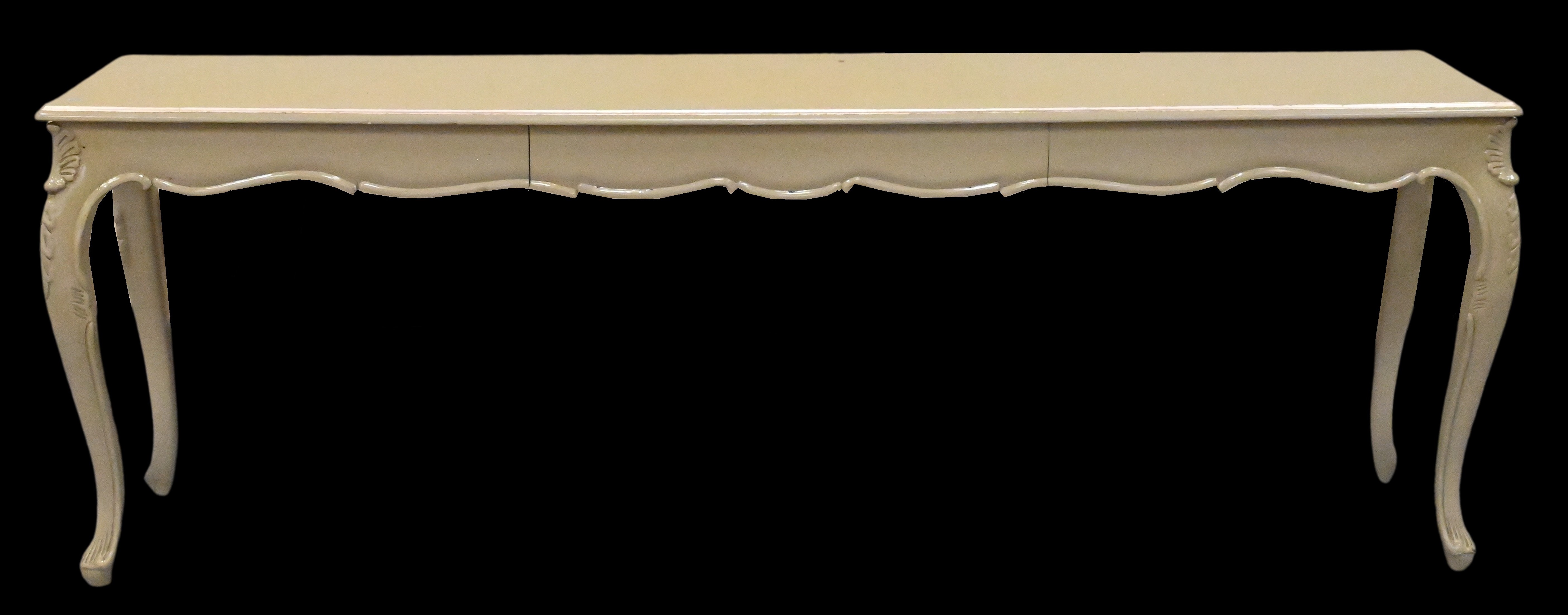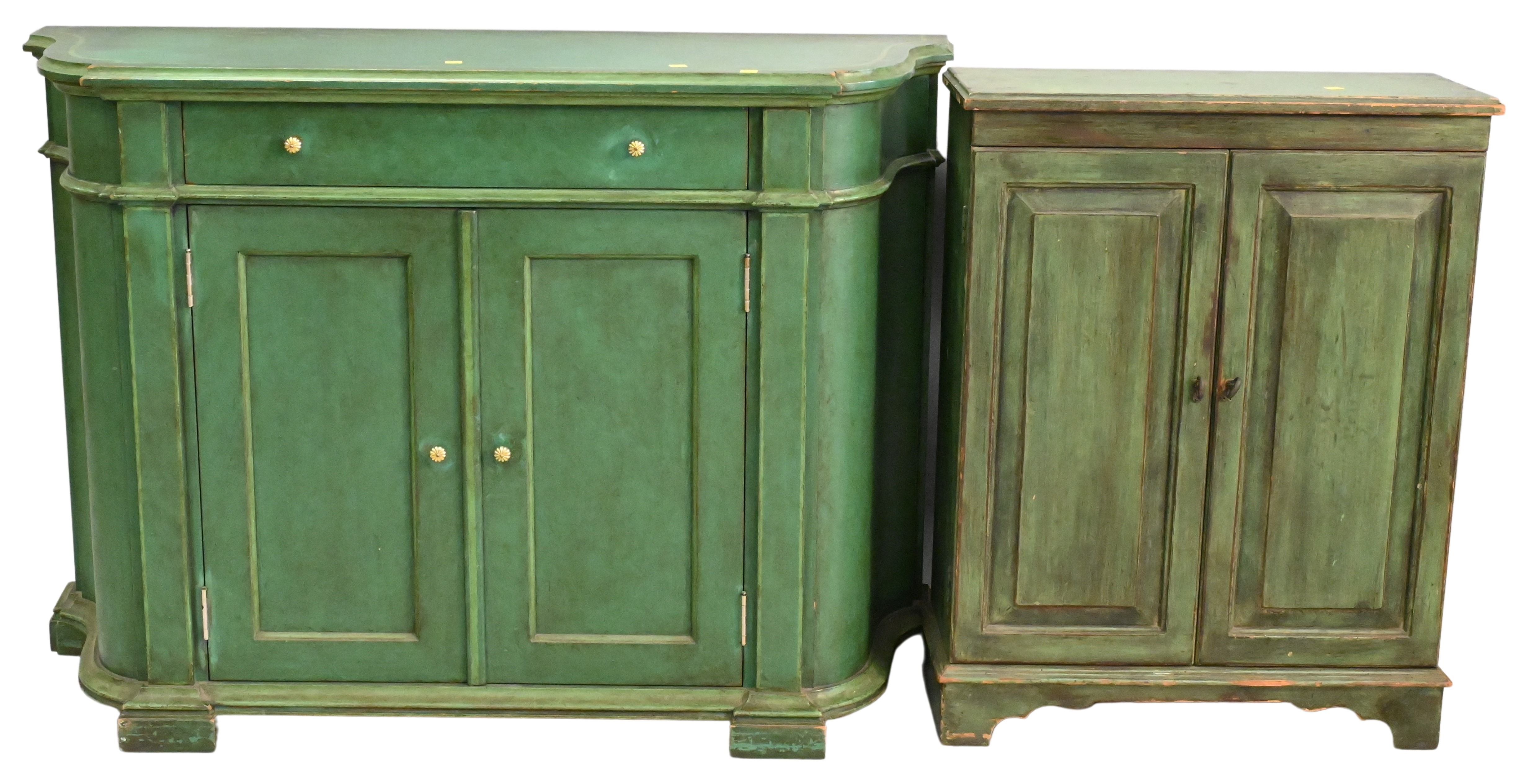 Two Piece Painted Furniture Lot, to include a server with shaped top, having one drawer and two doors, along with a two door cabinet, server height 34 inches, width 43 inches, cabinet height 33 inches, top 9″ x 25″