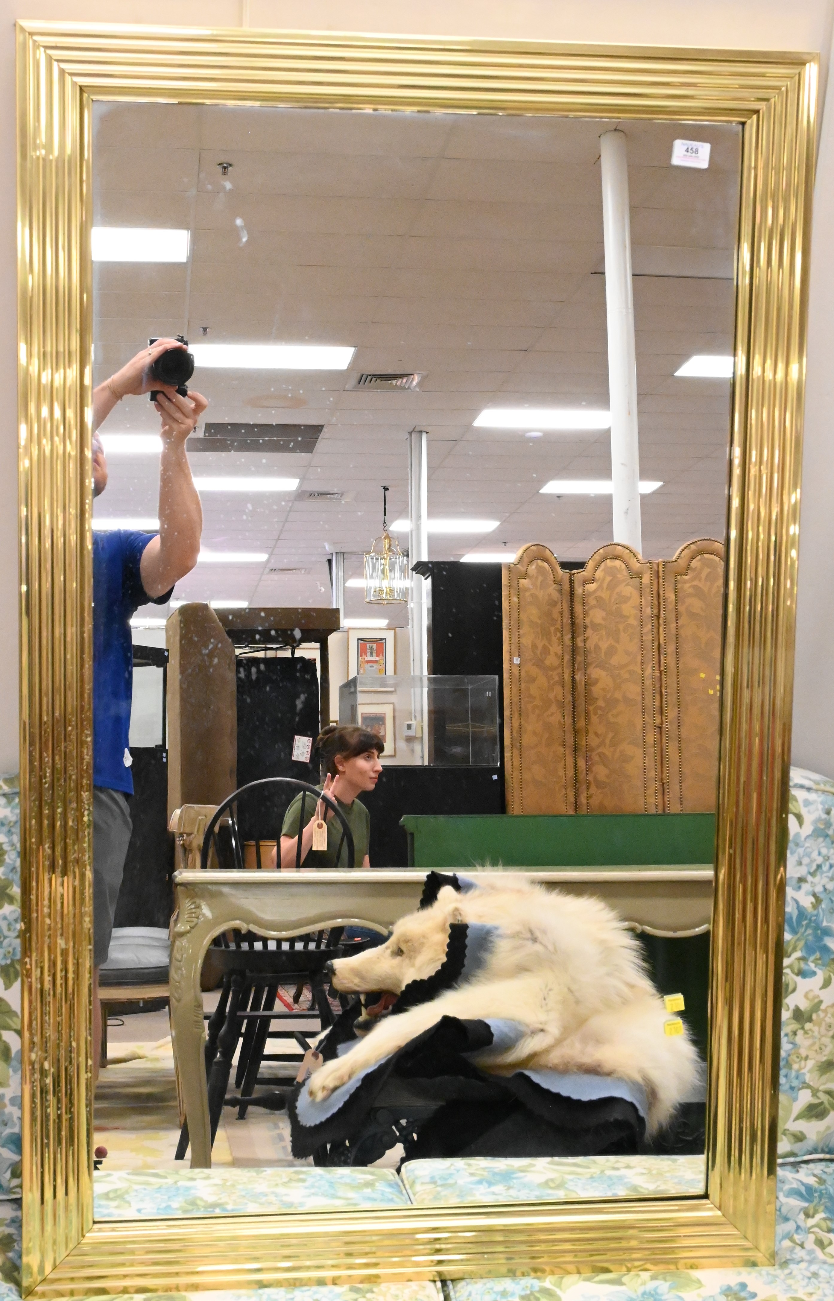 Large Grouping of Silver Plate and Brass, to include butter dishes, a tea kettle, platters, candlesticks, etc.. Mother of Pearl & Brass “LeMoire Paris” opera binoculars. Tiffany & Co. Swiss quartz desk clock. Candlesticks. Continental style folding bookstand. 9 inch x 10 inch frame. Brass ash/fire starter cauldron.